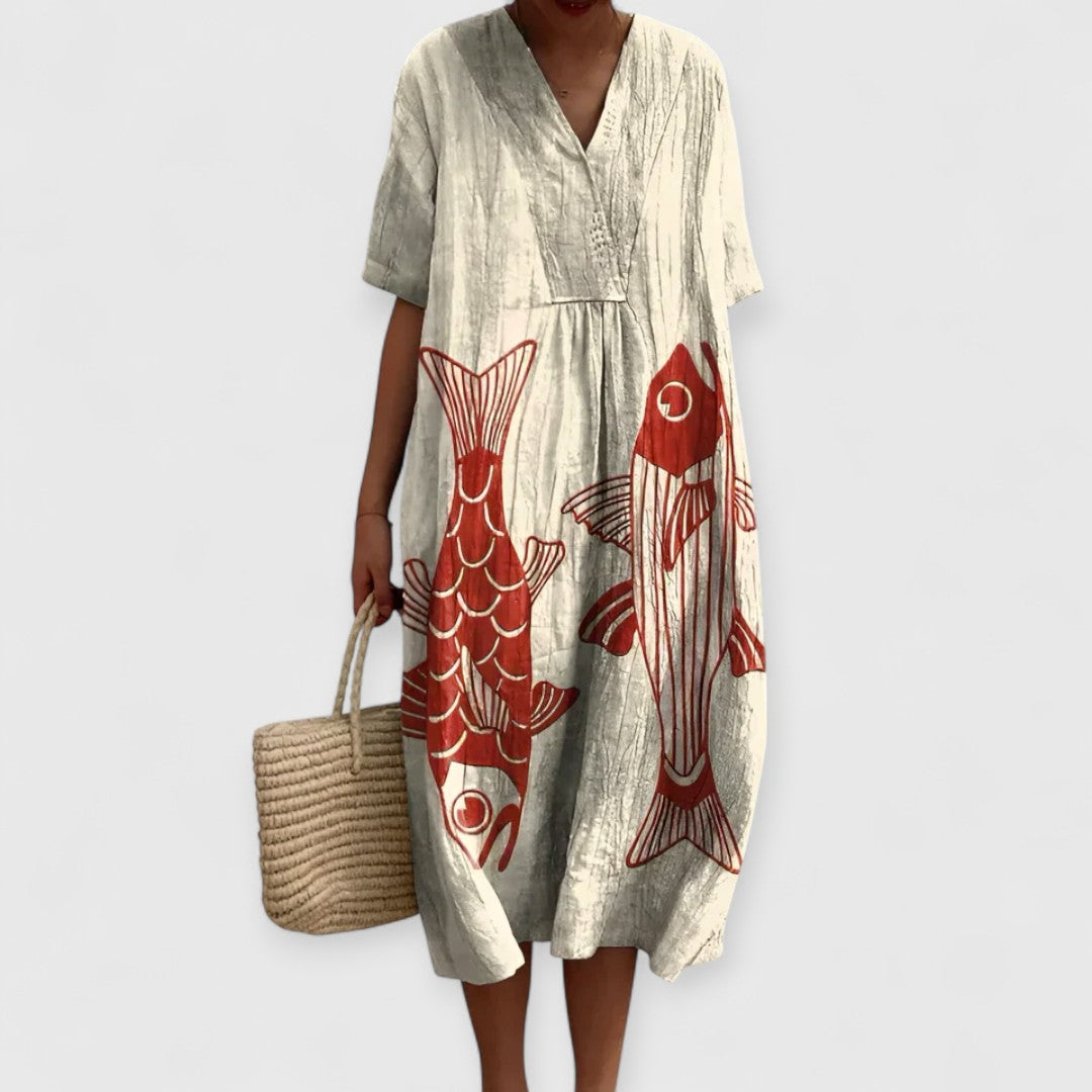 Verwandle deine Sommergarderobe mit unserem meistverkauften Stück, das jedem Anlass einen Hauch von Frische und lebendiger Farbe verleiht. Sorgfältig gefertigt, kombiniert dieses Kleid hochwertige Materialien und Komfort, sodass du dich fabelhaft fühlst, egal wohin das Leben dich führt. Es ist deine erste Wahl für alles, von sonnenverwöhnten Spaziergängen bis hin zu eleganten Mittagessen im Freien!