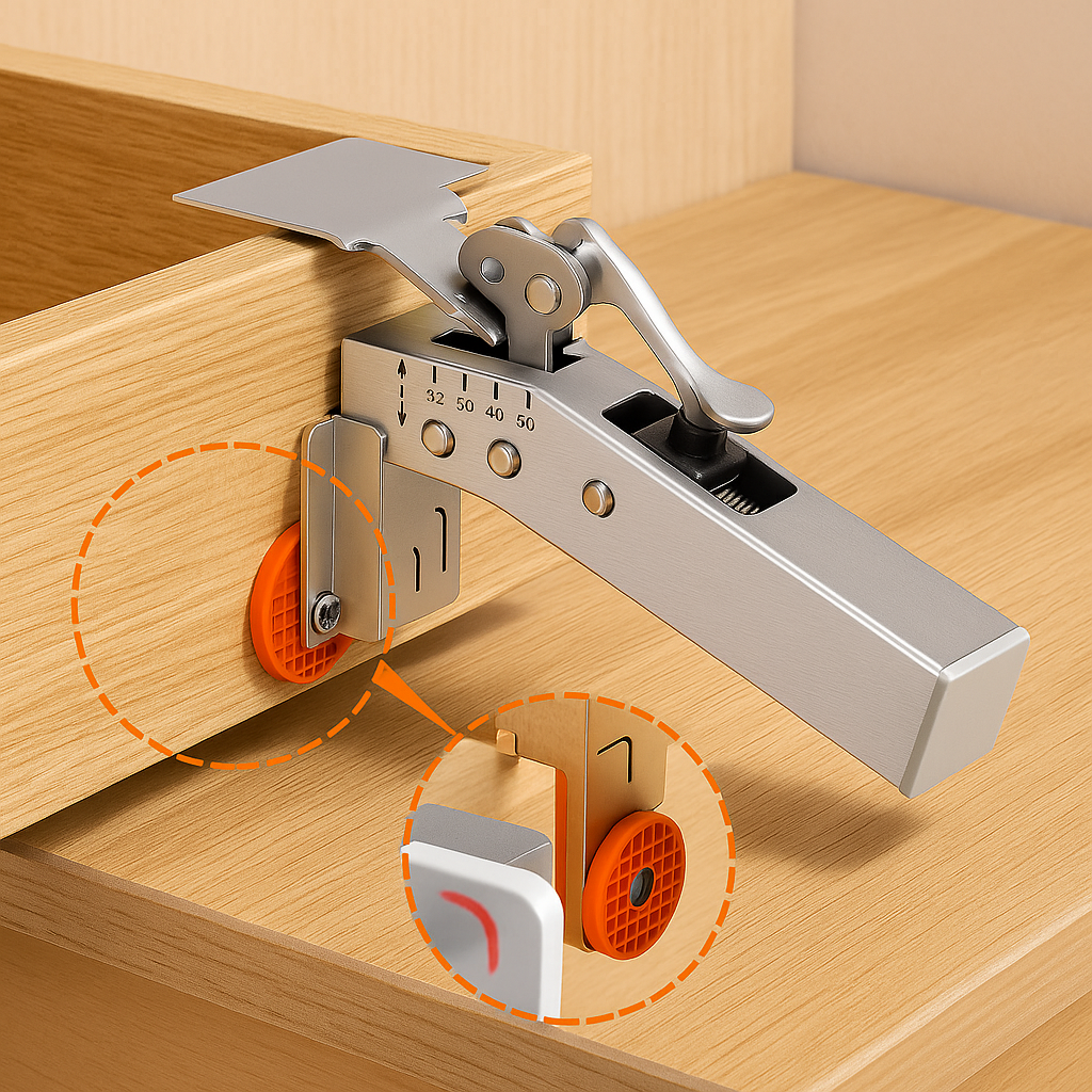 • Präzise Ausrichtung: Sorgt dafür, dass Schubladenfronten gerade und gleichmäßig montiert werden.