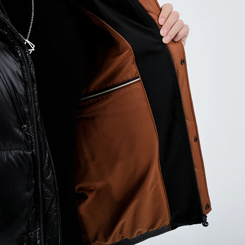 Pflegehinweise: Maschinenwaschbar bei 30°C. Zum Trocknen aufhängen, um die Daunenqualität und die Form der Jacke zu bewahren.