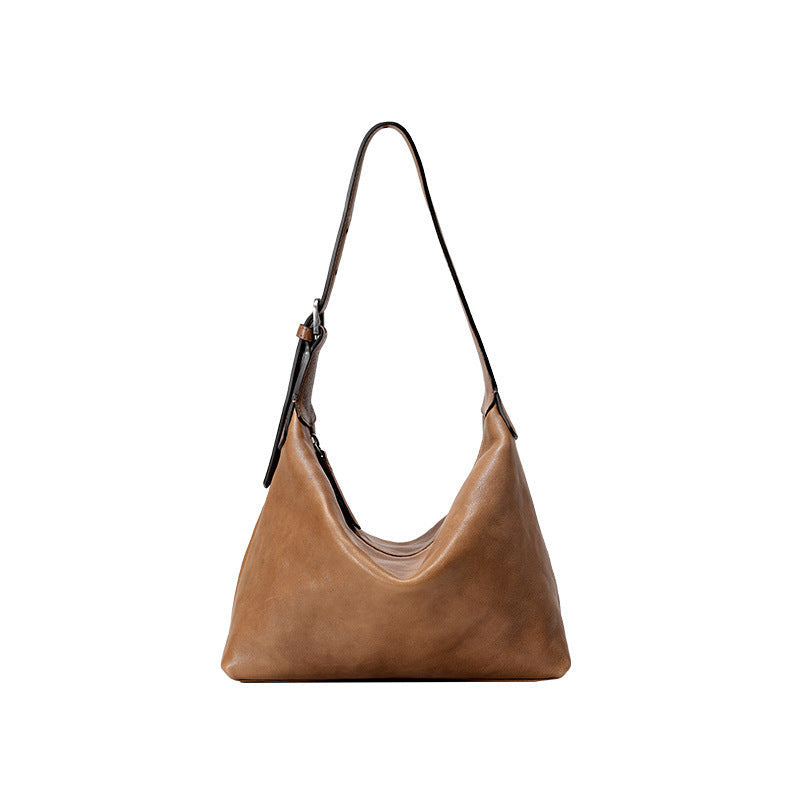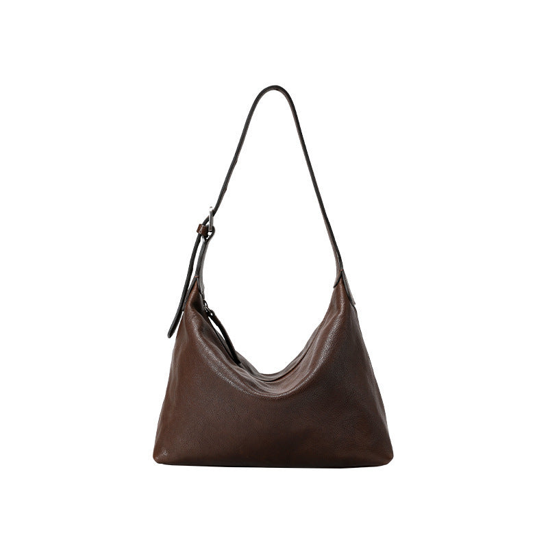 diese minimalistische schultertasche besticht durch ihre weiche form und das luxuriös anmutende lederfinish. der cleane look und die feine handwerkskunst machen sie zum idealen begleiter für den alltag – elegant, funktional und leicht zu kombinieren mit jeder garderobe.