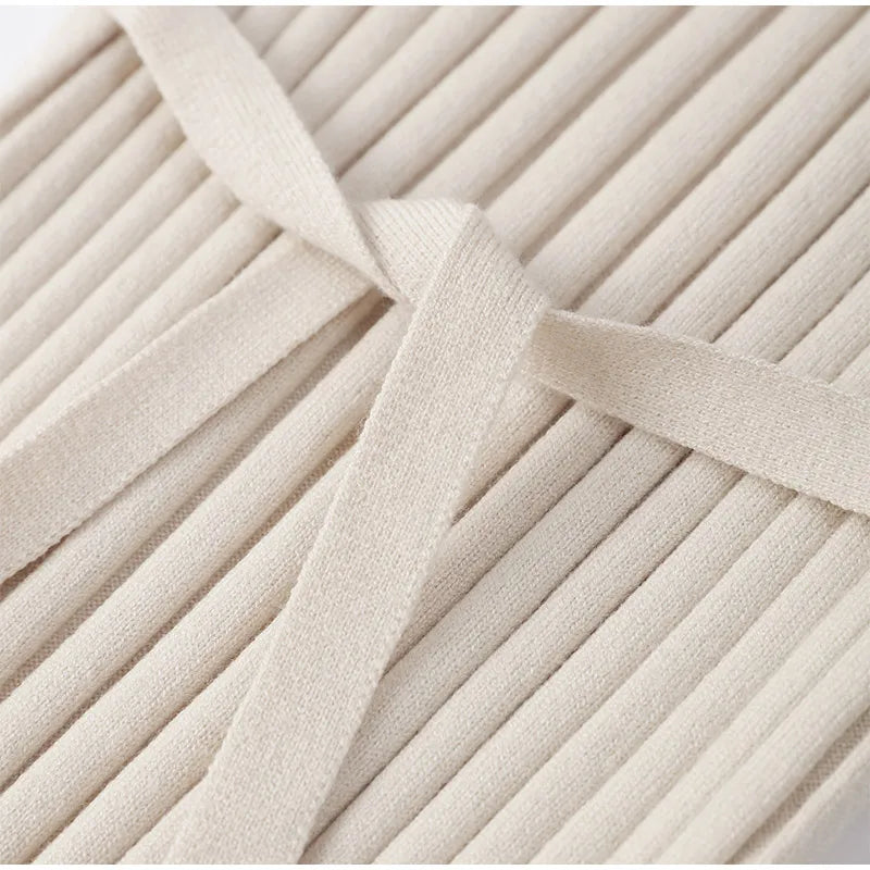 Die Angela-Robe ist aus hochwertigem Strickmaterial gefertigt und vereint Eleganz und Komfort auf perfekte Weise. Ihr schlichter Design und die fließende Passform sorgen dafür, dass Sie bei jeder Gelegenheit stilvoll auftreten.