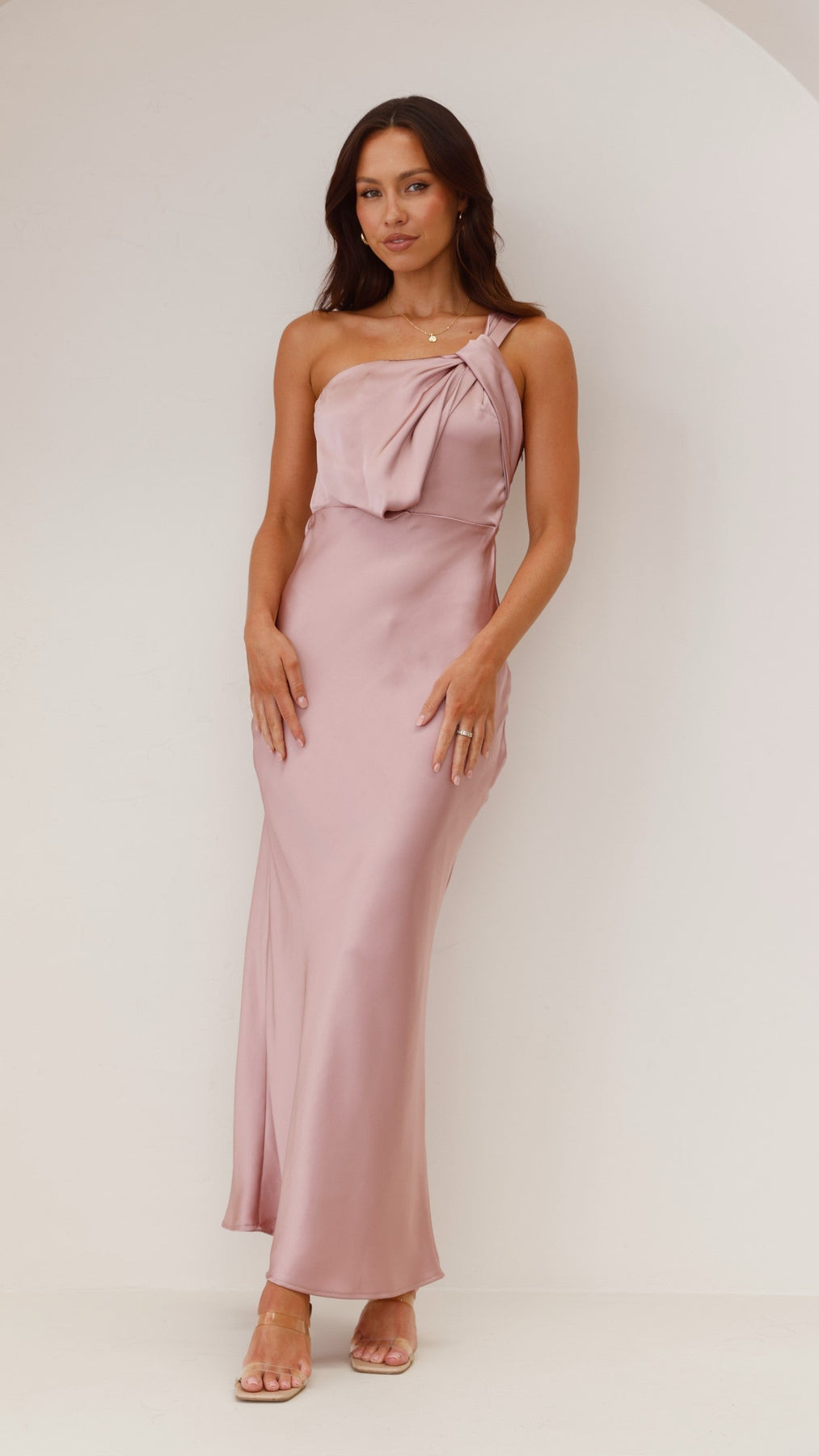 Das Annika Maxikleid in Staubigem Rosa verleiht deinem Auftritt eine sanfte, feminine Note mit modernem Flair. Die elegante One-Shoulder-Silhouette und die fließende Form machen dieses Kleid zur perfekten Wahl für besondere Momente mit stilvollem Anspruch.