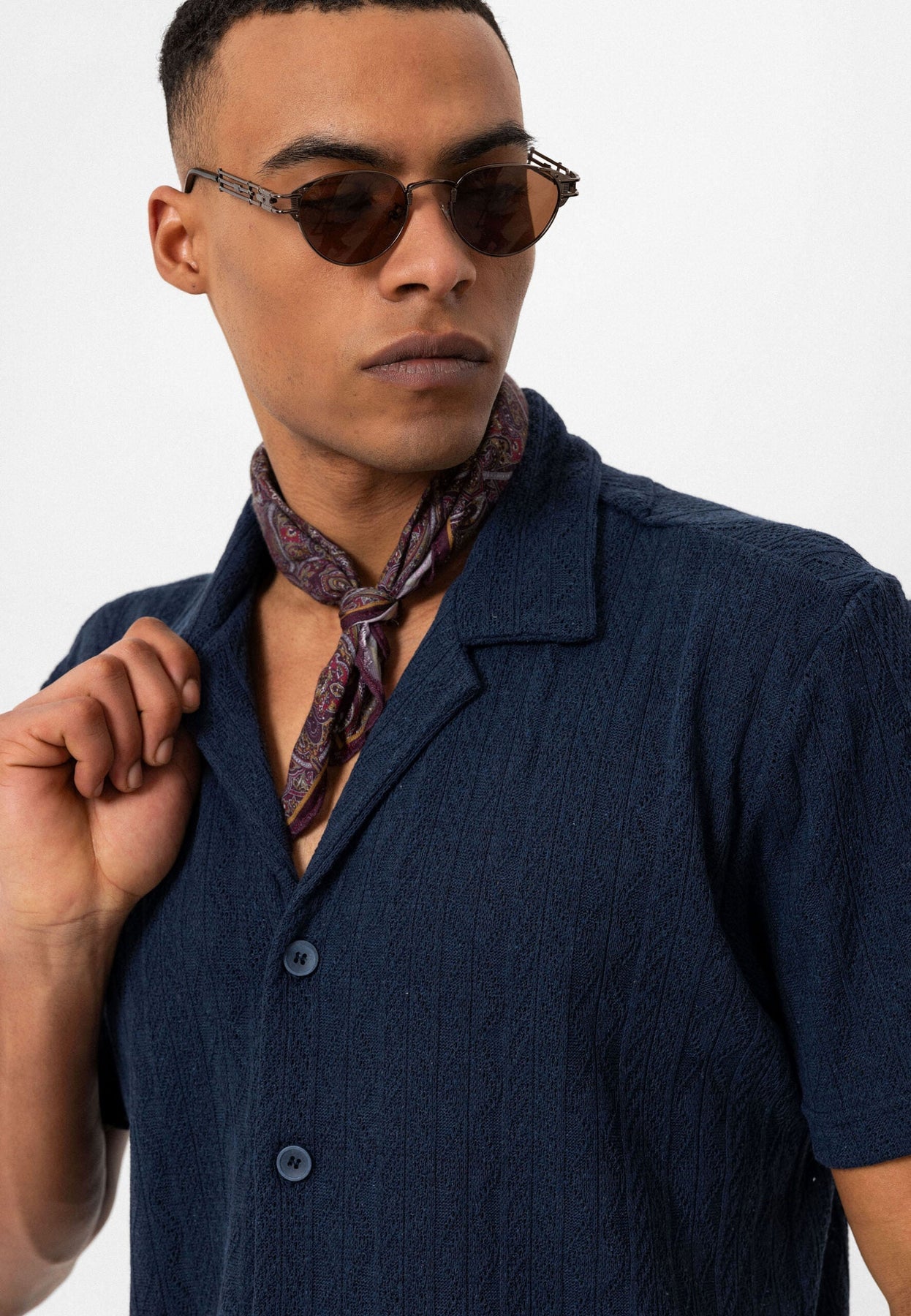 Dieses kurzärmelige Hemd setzt mit seinem kühnen Look und seiner raffinierten Ästhetik ein Statement. Entworfen für sowohl Komfort als auch Stil, bietet es eine markante Silhouette und einen hochwertigen Stoff, der den luxuriösen Look unterstreicht. Die Knopfleiste verleiht eine klassische Note, wodurch es eine vielseitige Wahl für sowohl tägliche Stadtoutfits als auch geschäftliche Looks ist. Leicht mit verschiedenen Hosen kombinierbar, hilft dir dieses Hemd, einen selbstbewussten und stilvollen Look zu kreieren, der dein Erscheinungsbild mühelos auf das nächste Level hebt.
