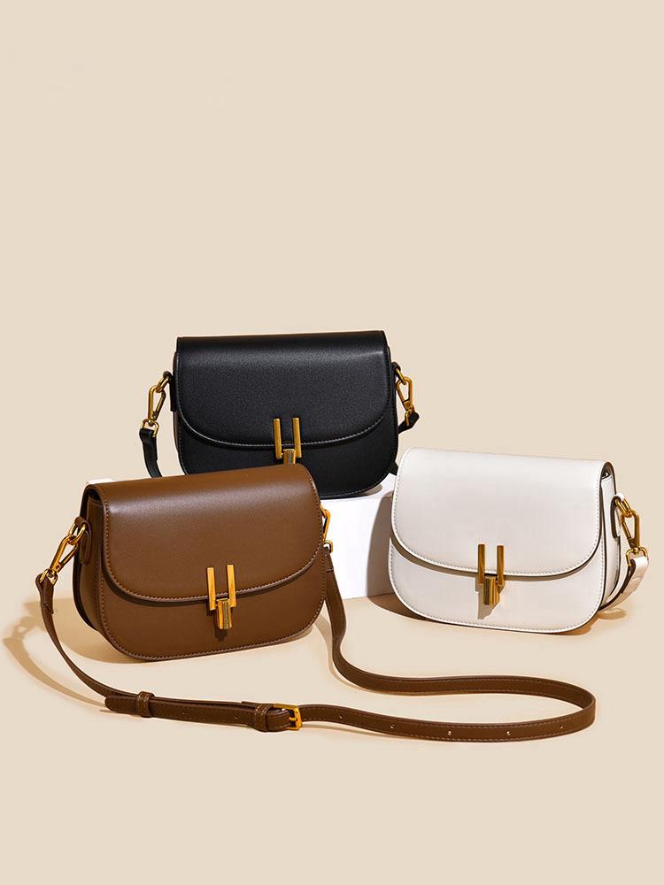 Zeitlose Crossbody-Bag im minimalistischen Design – ideal für den Alltag, Business und Abendlooks. Die klare Linienführung und die goldenen Akzente verleihen ihr eine luxuriöse Note, die jedes Outfit aufwertet.