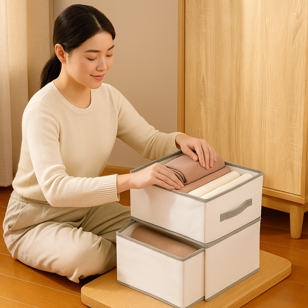 • Modulare Flexibilität: Boxen stapeln oder anordnen, um sich Ihrem Schranklayout anzupassen.