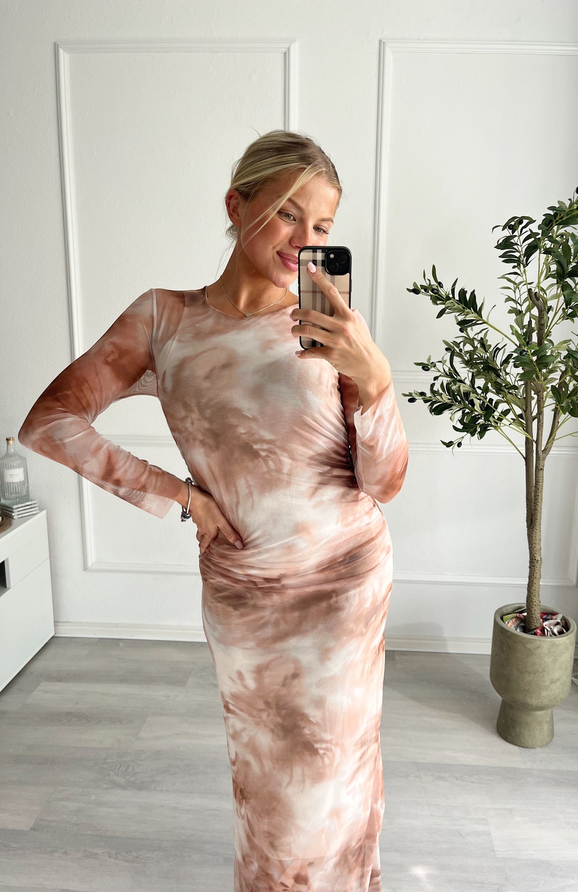 Ein stylishes Maxikleid, das mit seinem modernen Batik Print alle Blicke auf sich zieht. Ideal für den Alltag sowie besondere Anlässe