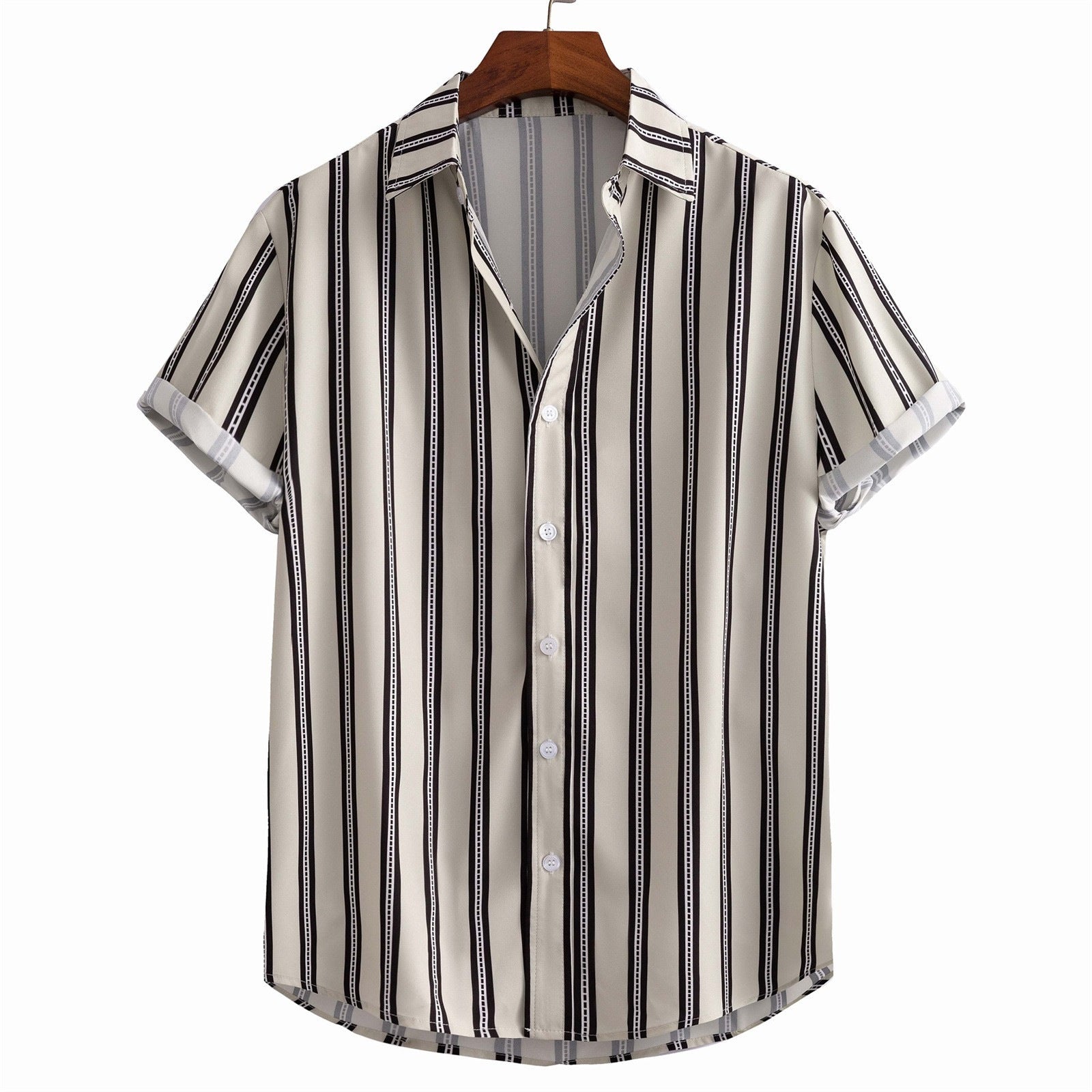 Die vertikale Streifenmusterung und der klassische Kragen verleihen ihm einen eleganten, aber lässigen Touch – ideal für entspannte Sommertage oder casual Smart-Looks.