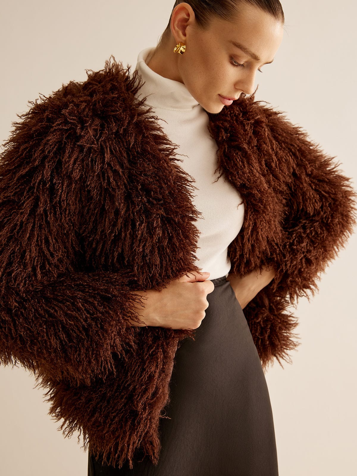 Boho-Chic trifft auf luxuriöse Wärme – Die braune Kunstfelljacke