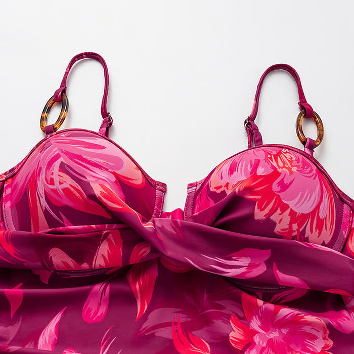 In diesem zweiteiligen Badeanzug mit Blumenmuster sehen Sie frisch und feminin aus. Das zarte Design ist perfekt, um Ihren Stil am Strand oder am Pool zu unterstreichen.