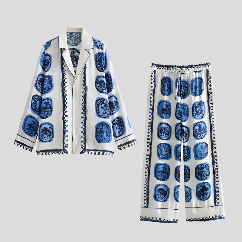 Das Cleo Geometrisch Koordinierte Set kombiniert auffällige Muster mit einer entspannten Silhouette und bietet einen kühnen, aber bequemen Look. Perfekt für Spaziergänge in der Stadt oder ungezwungene Treffen sorgt dieses zweiteilige Set dafür, dass du mühelos aus der Menge hervorstichst.
