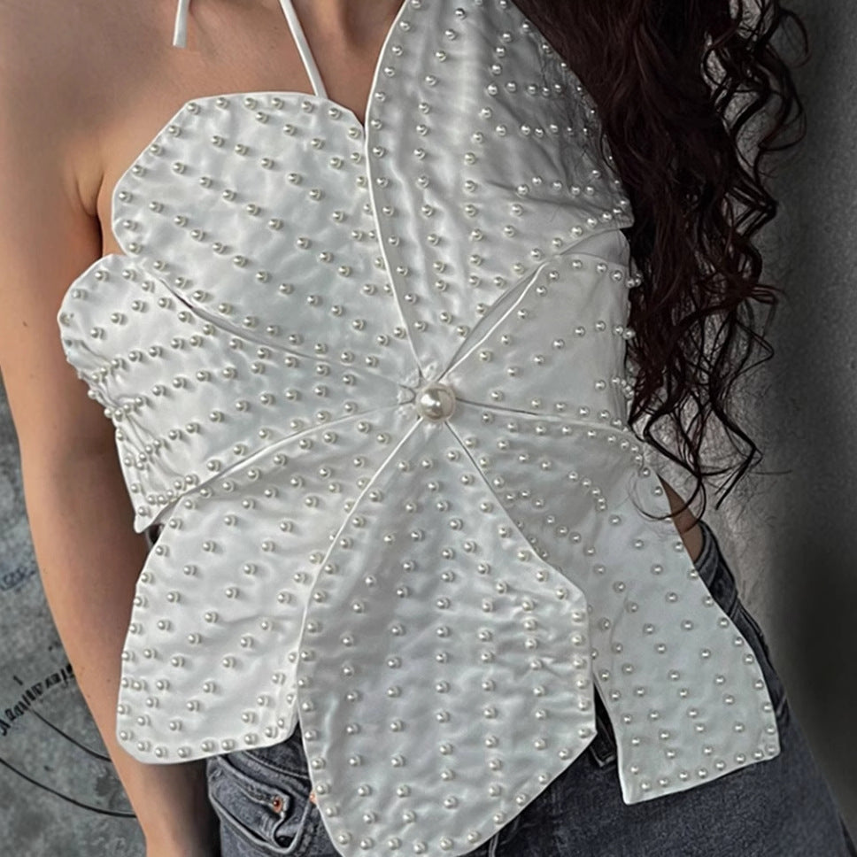 Damen Abendoberteil mit floralem Detail und Perlenverzierung Fudus