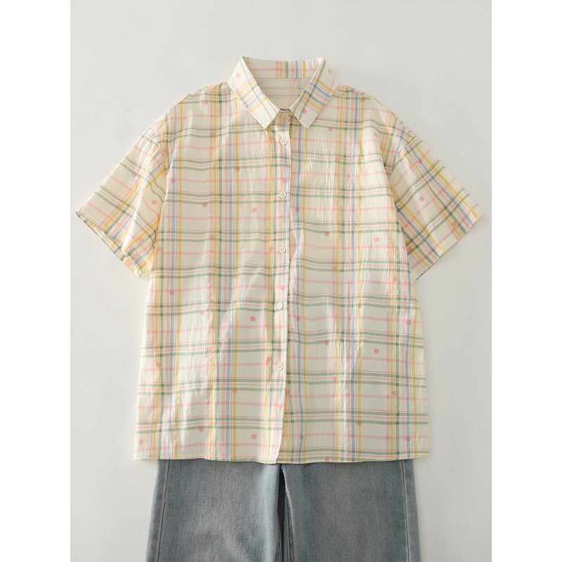 Damen Karierte Kurzarmbluse mit Brusttasche und lockerer Passform Fudus
