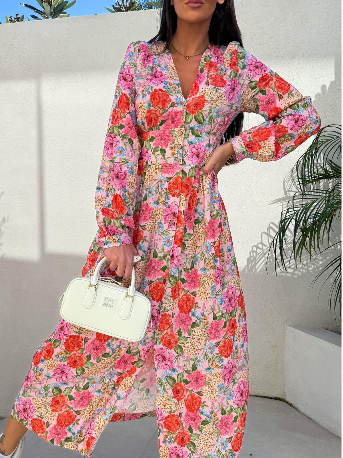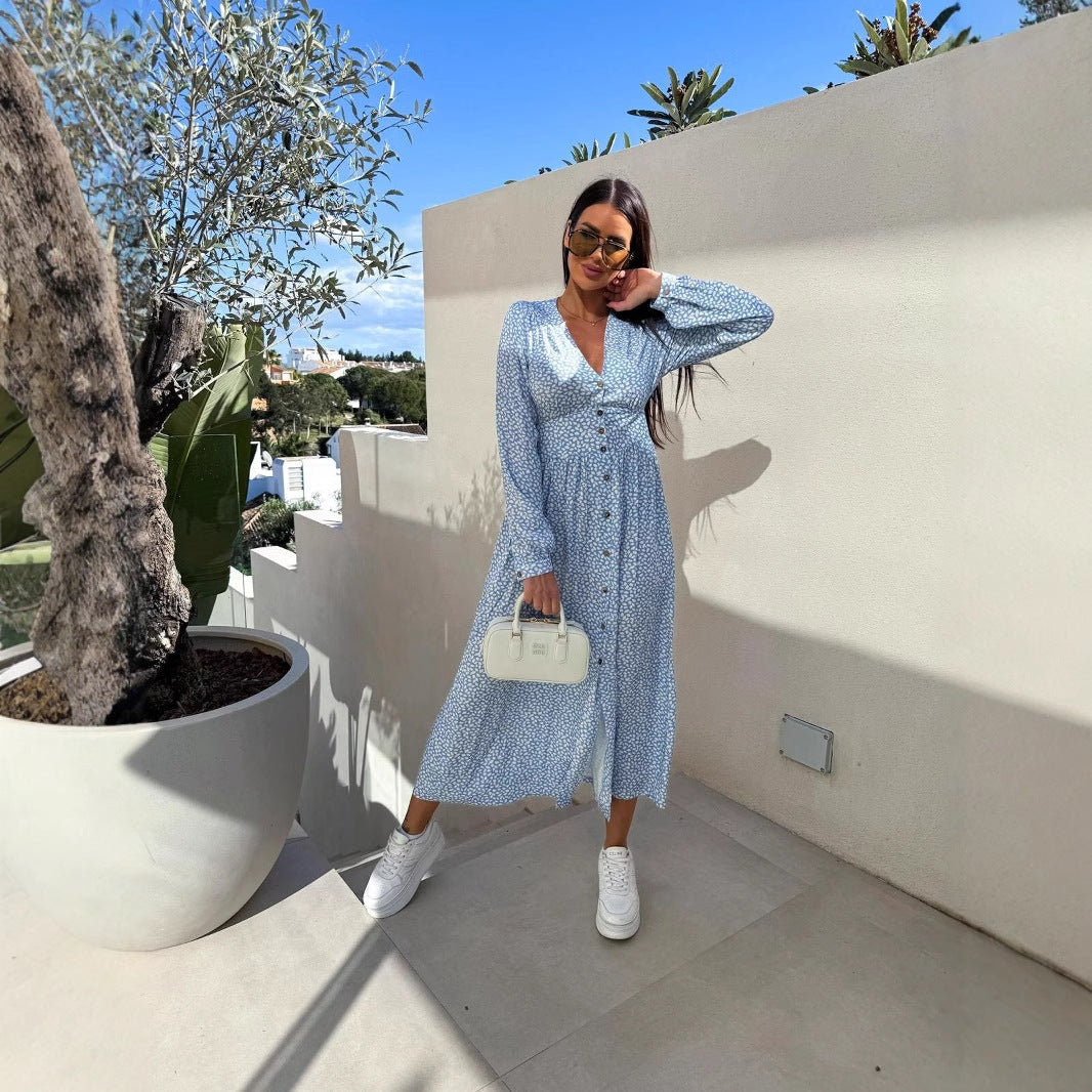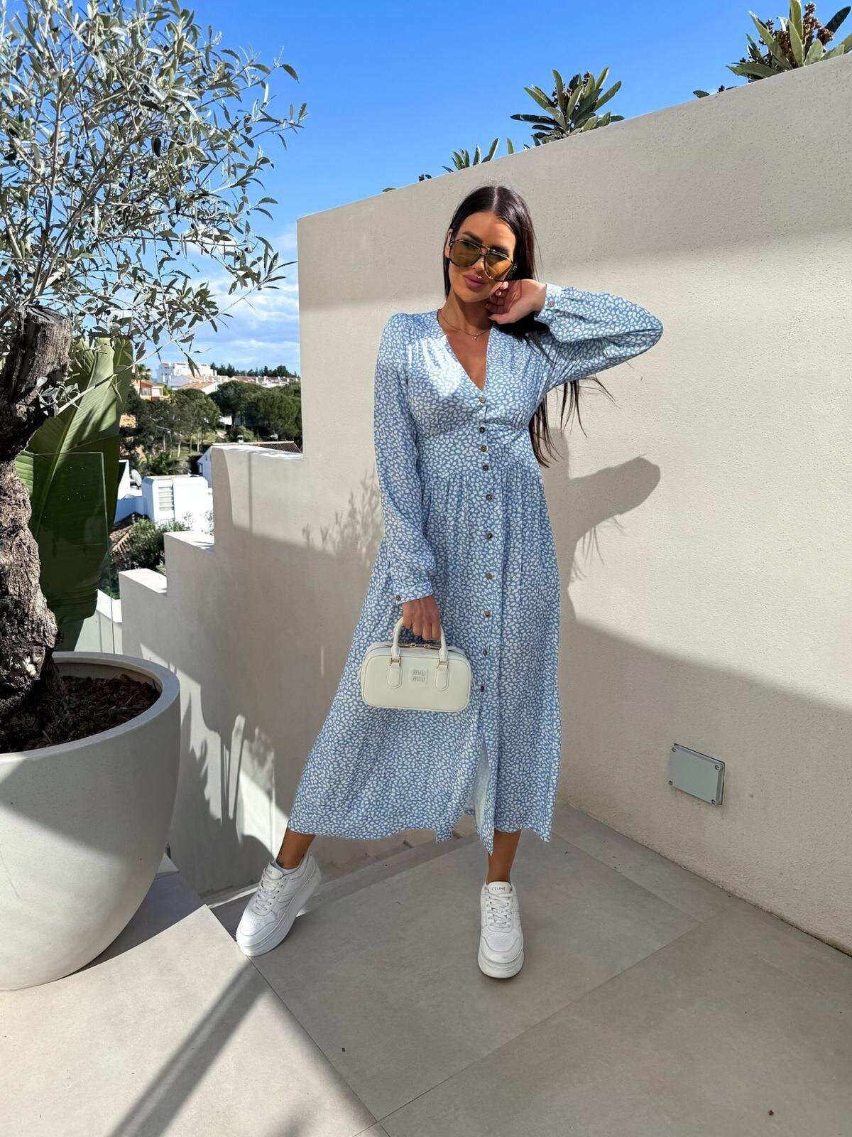 Entdecken Sie unser modisches Knielanges Hemdblusenkleid mit kreativem Druck und eleganten Knopfdetails von der Marke Fudus. Perfekt für warme Tage oder besondere Anlässe ist dieses Kleid der ideale Begleiter für stimmungsvolle Auftritte.