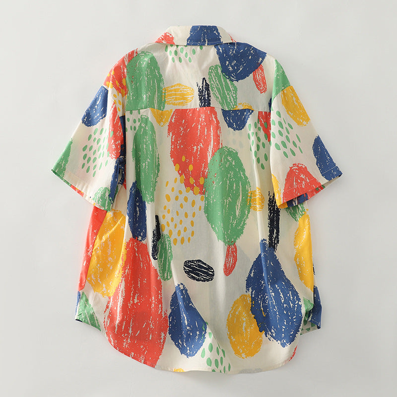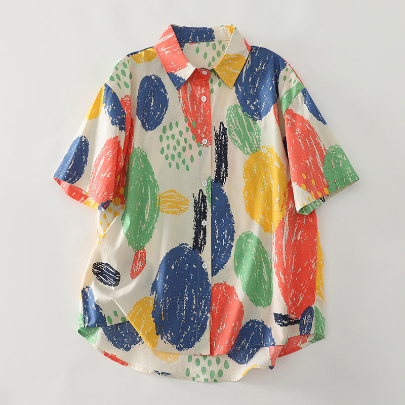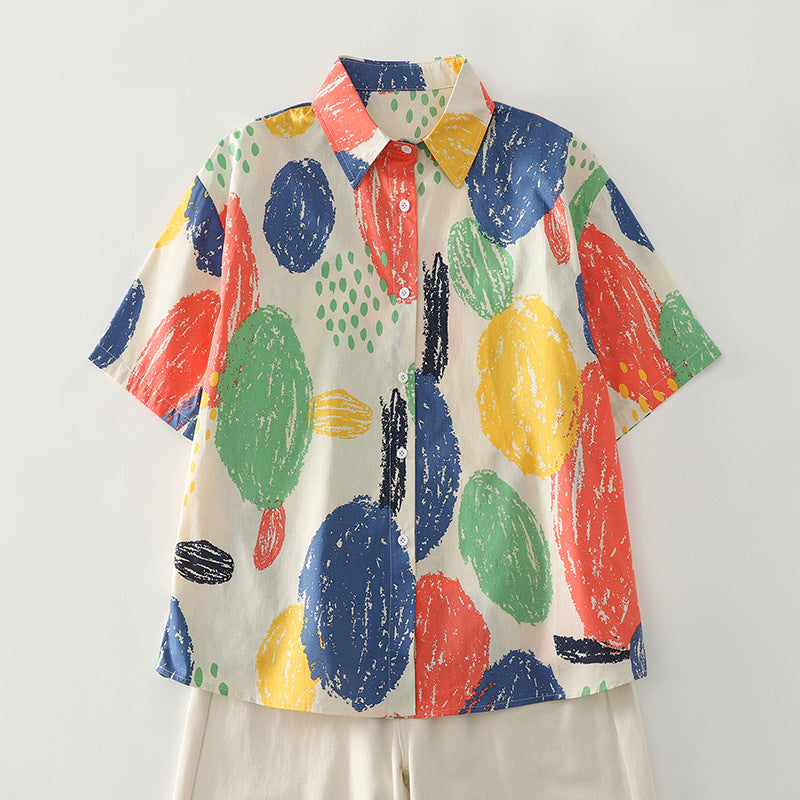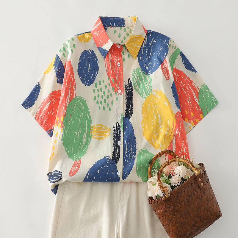 Damen Kurzarm-Hemd mit farbenfrohem Muster und lässiger Passform Fudus