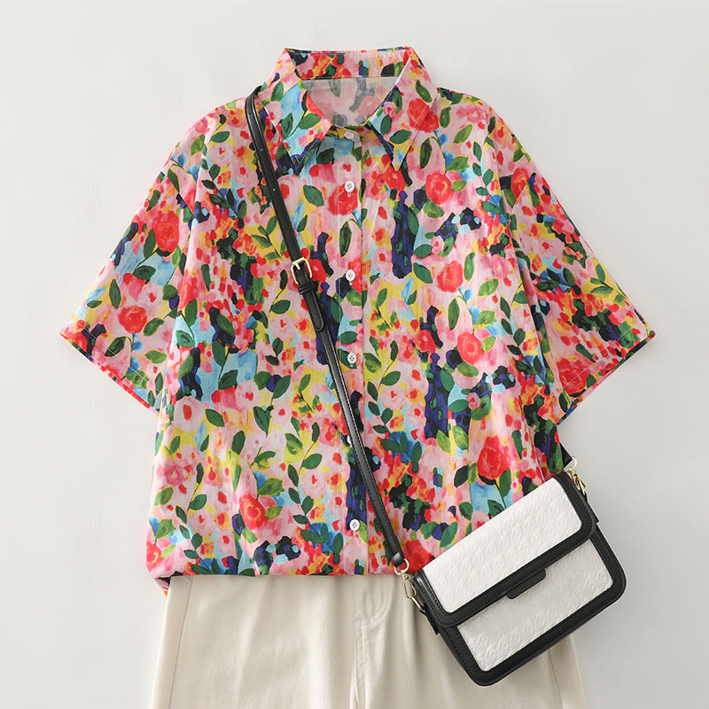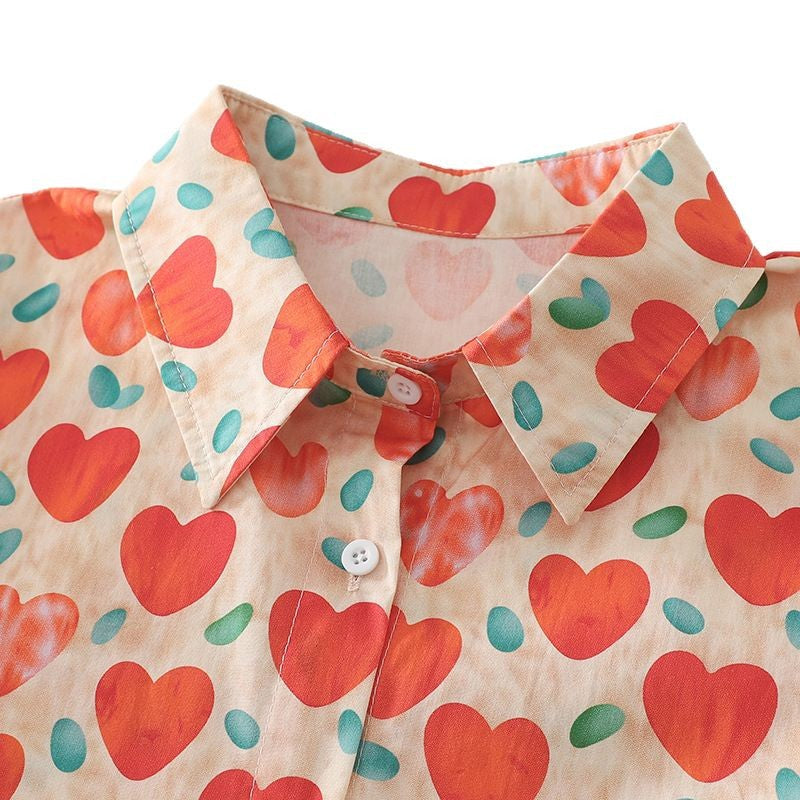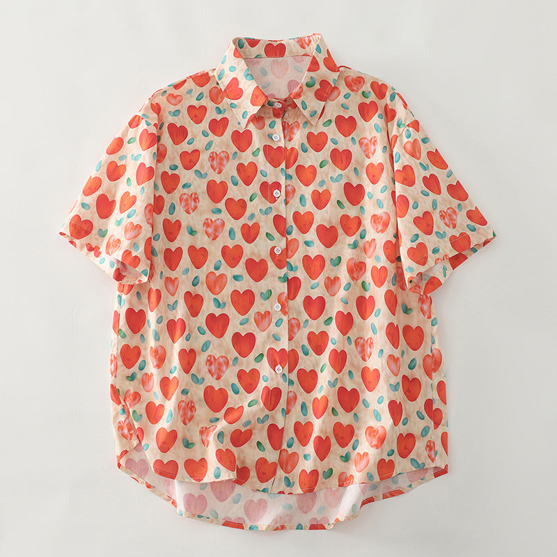 Entdecken Sie unser stilvolles Damen Kurzarm-Hemd mit Herzmuster von Fudus, das perfekte Kleidungsstück für lässige Anlässe und sommerliche Tage. Dieses Hemd besticht durch sein einzigartiges und fröhliches Design, das mit bunten Herzen verziert ist und somit sofort gute Laune verbreitet.