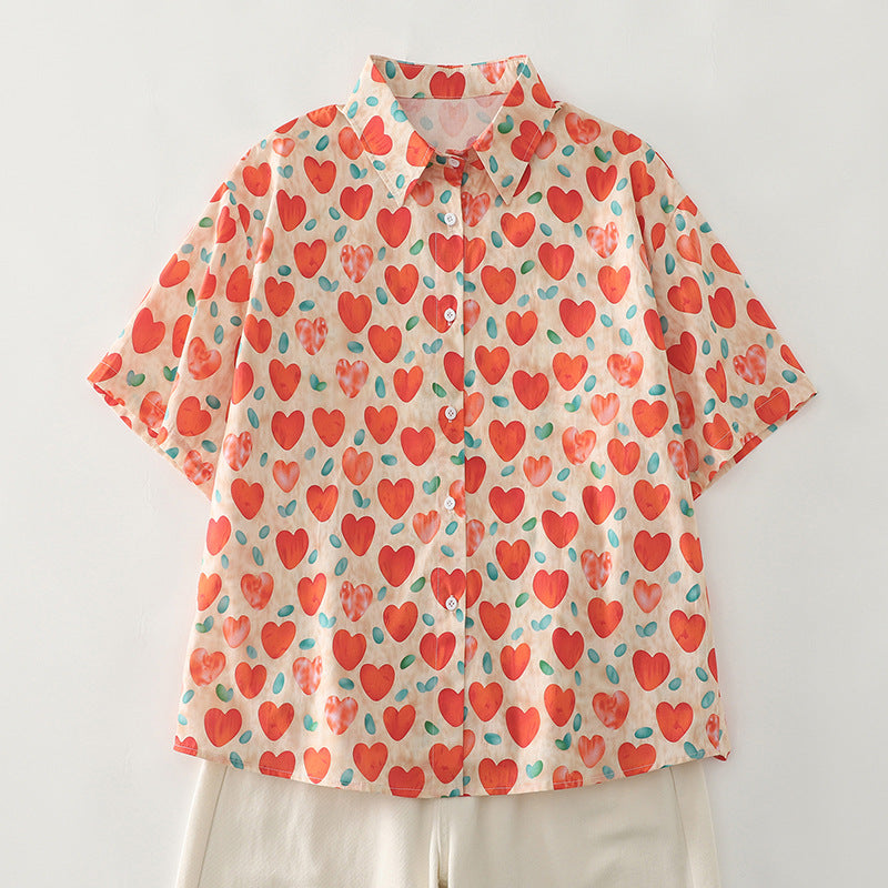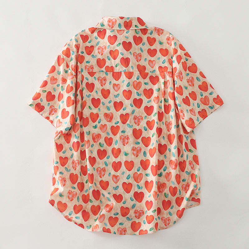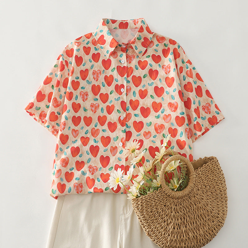 Damen Kurzarm-Hemd mit Herzmuster Fudus