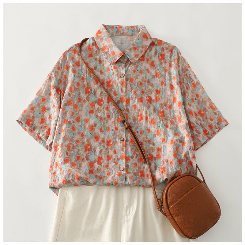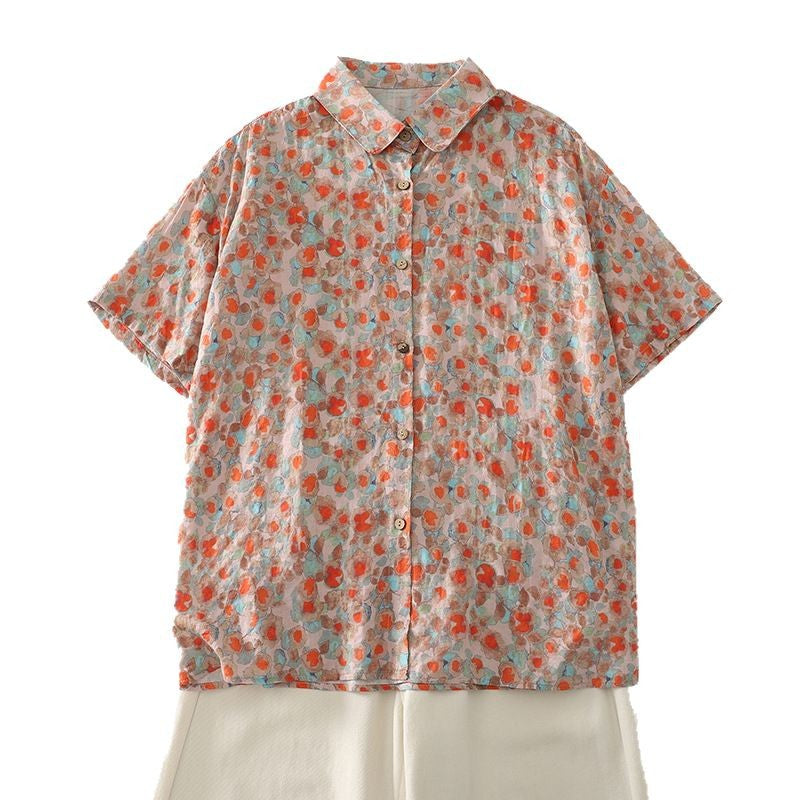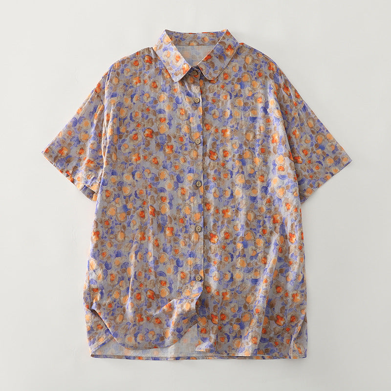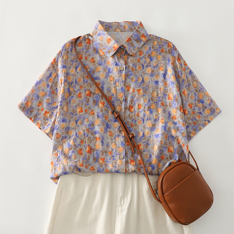 Damen Kurzarmhemd mit floralem Design und lockerer Passform Fudus