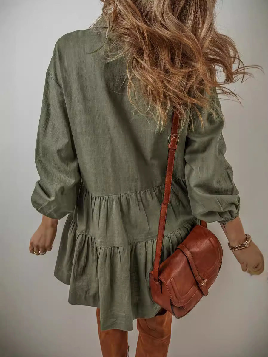 Damen Langärmliges Smockkleid mit Knopfdetails und Rüschen Fudus