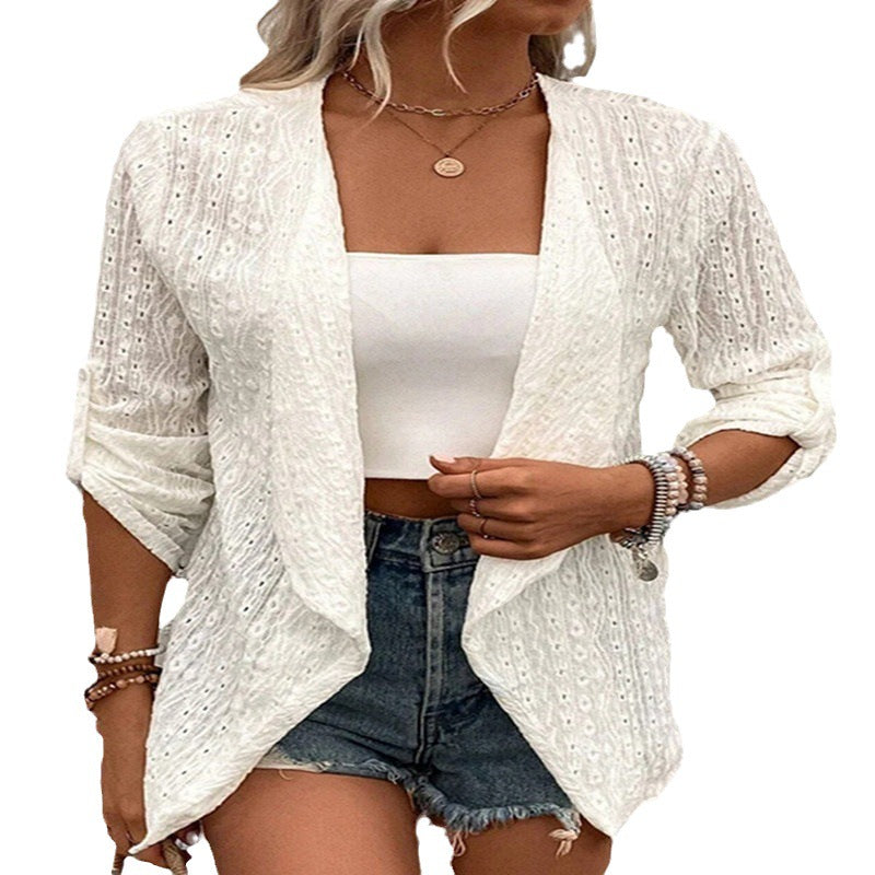 - Elegantes Design: Die luftige Lochmusterung verleiht der Jacke einen femininen und modernen Touch.