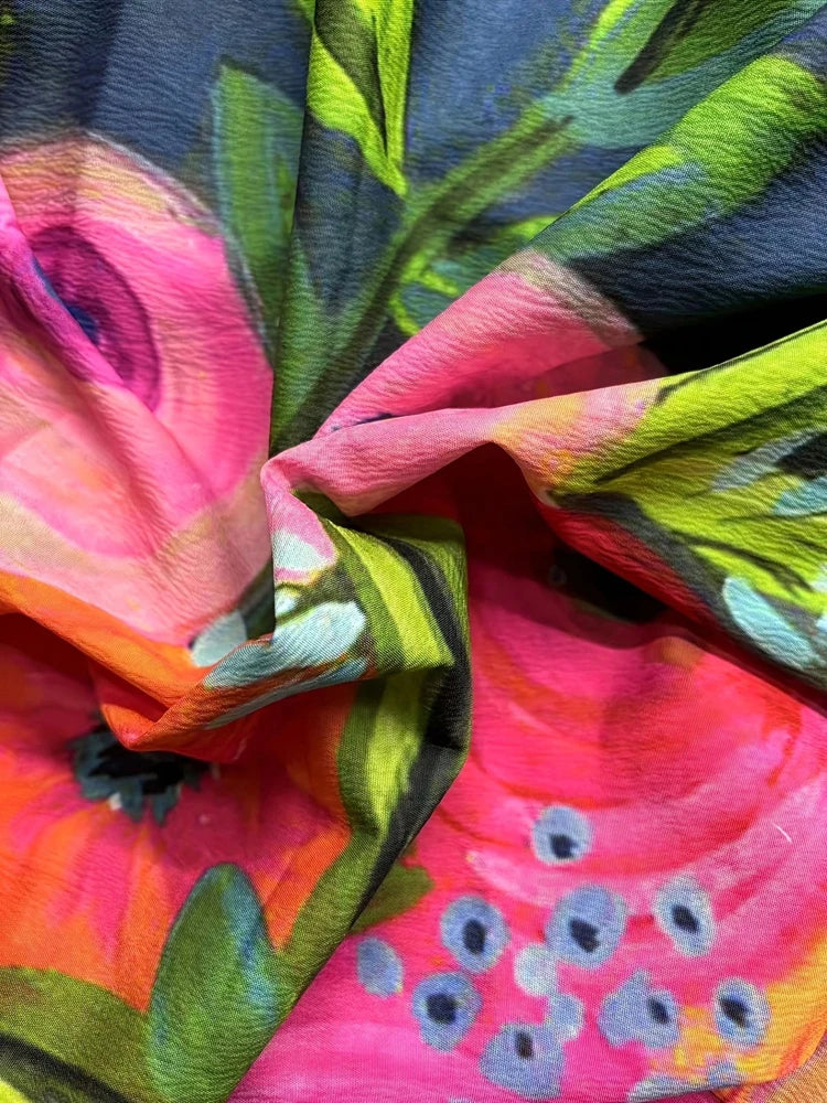 Unsere Produkte sind aus hochwertigen Materialien wie Baumwolle, Seide und Leinen gefertigt. Um die Qualität und Langlebigkeit dieser edlen Stoffe zu bewahren, empfehlen wir, sie bei maximal 30 Grad in der Waschmaschine zu waschen. So bleibt Ihre Kleidung lange schön und fühlt sich immer angenehm auf der Haut an.