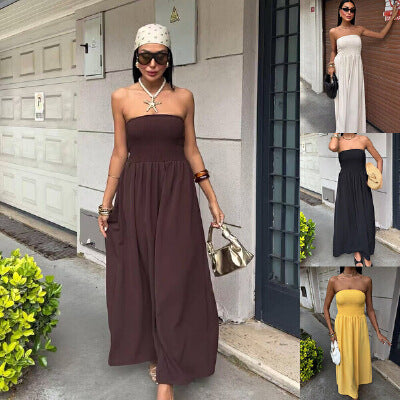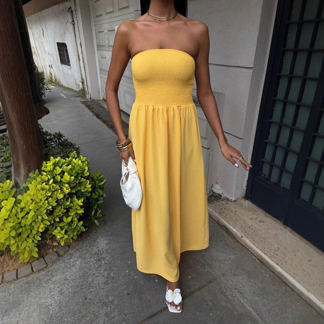 Damen Maxikleid mit elastischem Oberteil und fließendem Rock Fudus