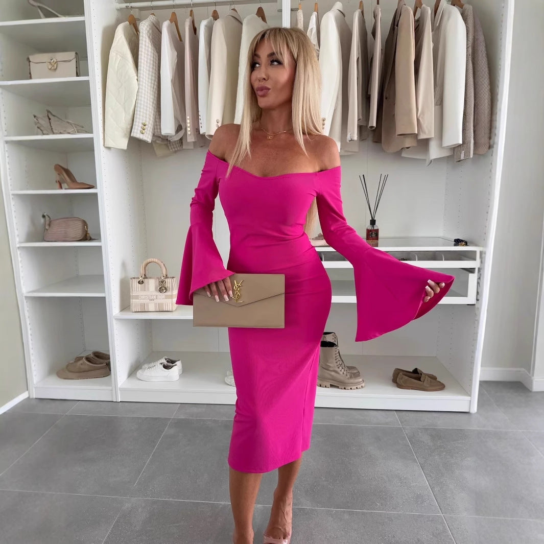 Damen Off-Shoulder Kleid mit Ballonärmeln und figurbetonter Silhouette Fudus