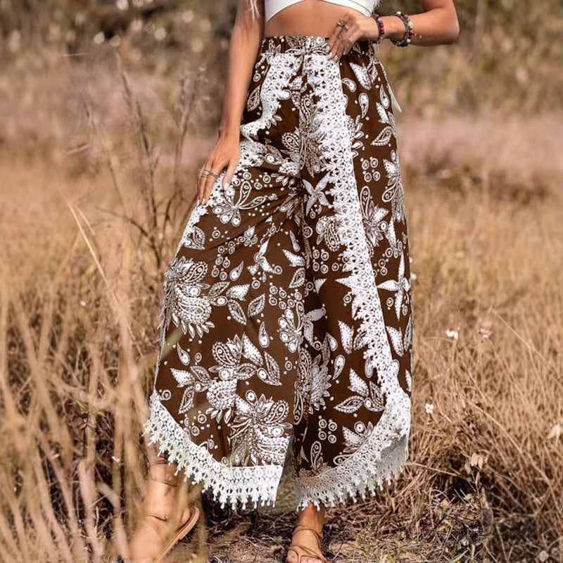 - Elegantes Design: Das florale Muster und der dekorative Spitzenbesatz verleihen der Hose einen romantischen, femininen Look, der Ihre Outfits aufwertet.