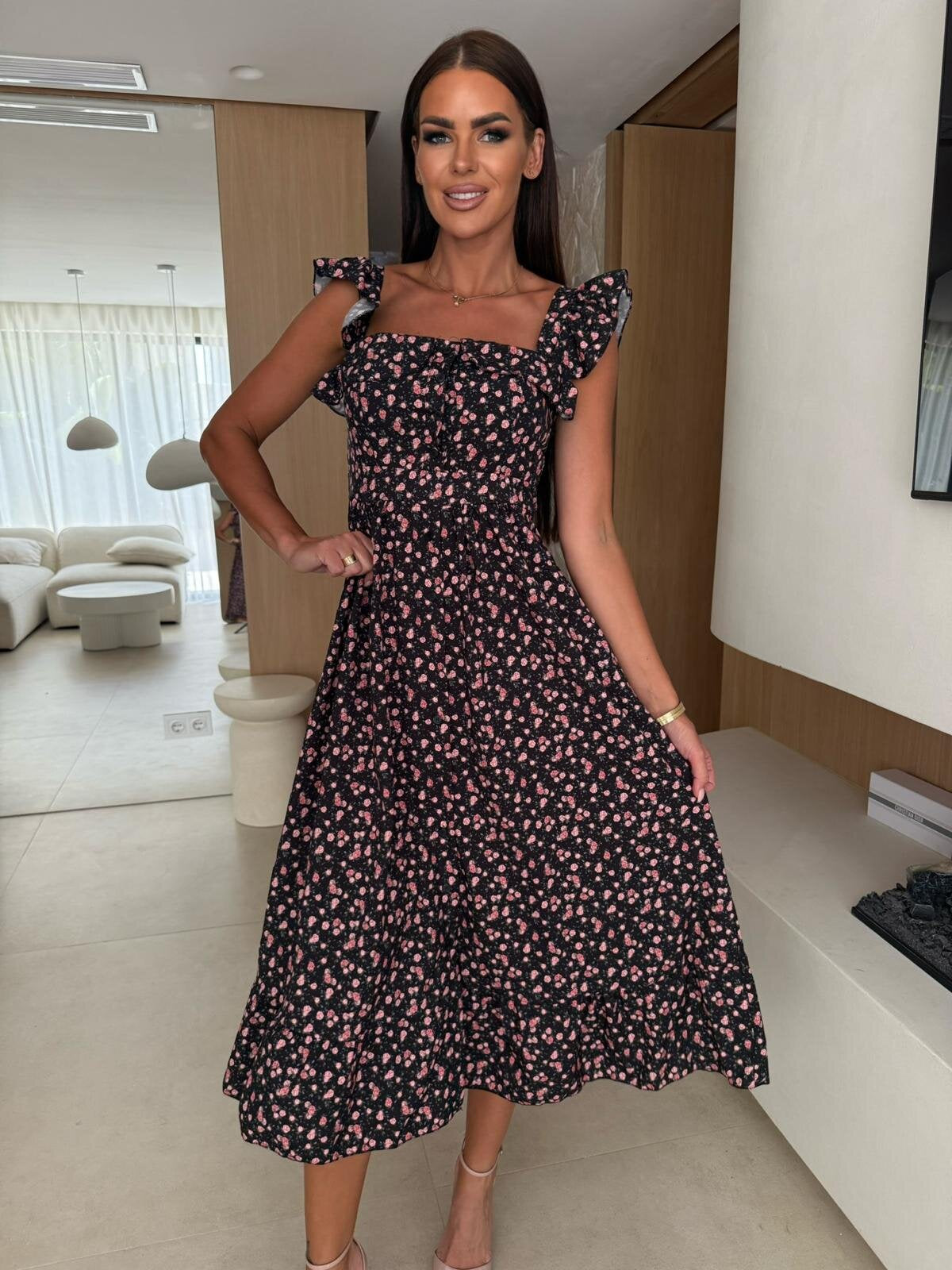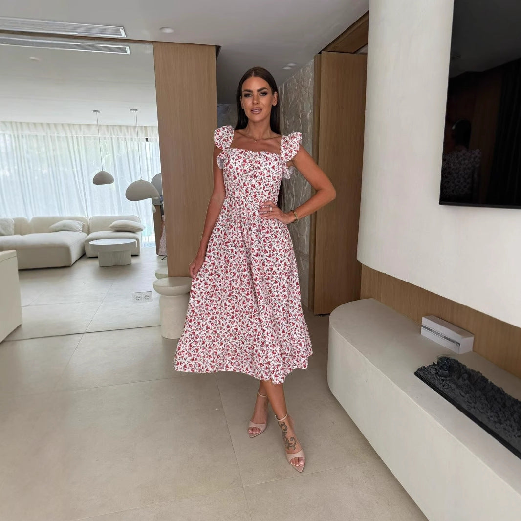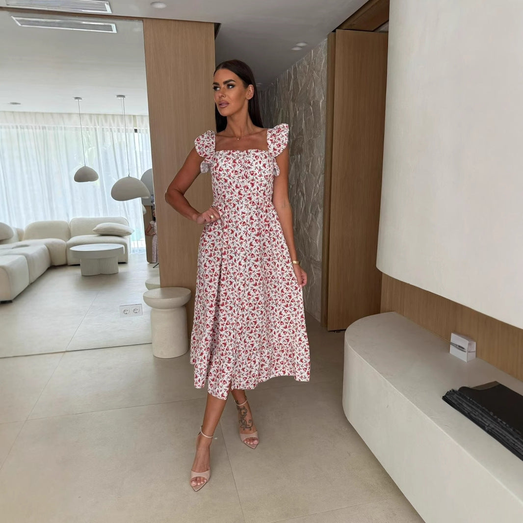 Damen Sommerliches Maxikleid mit Rüschendetails und fruchtigem Muster Fudus