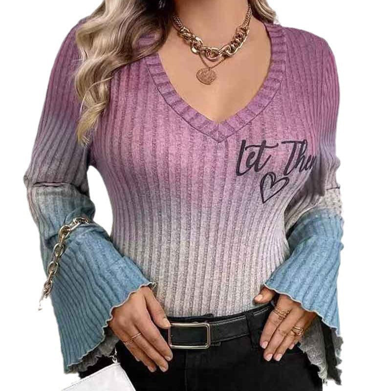 Damen Viskose Oberteil mit modischem V-Ausschnitt und lässigem Rippdesign Fudus