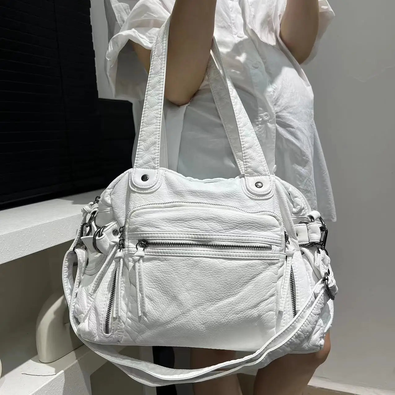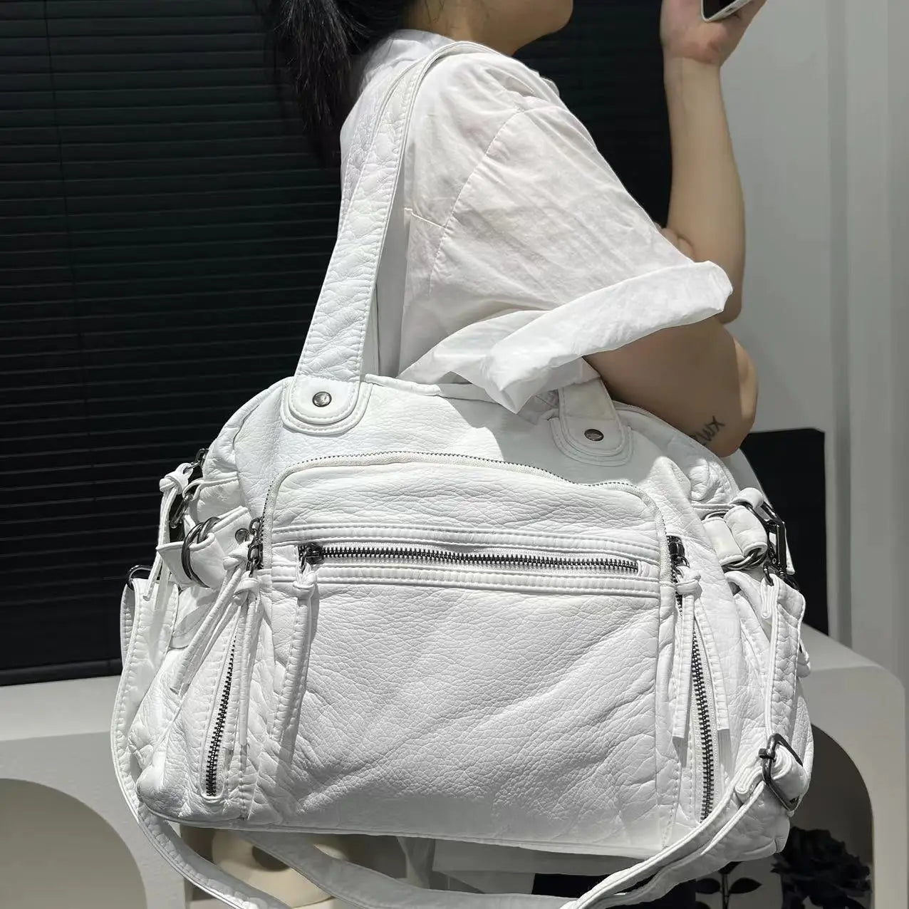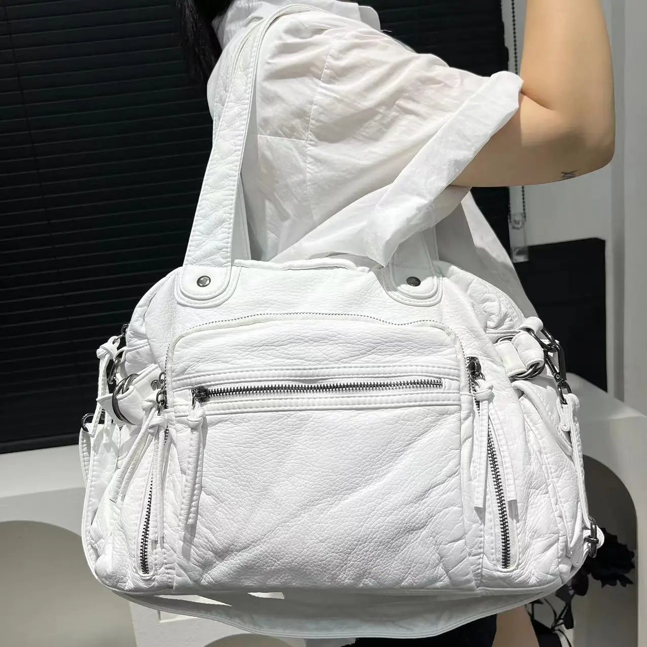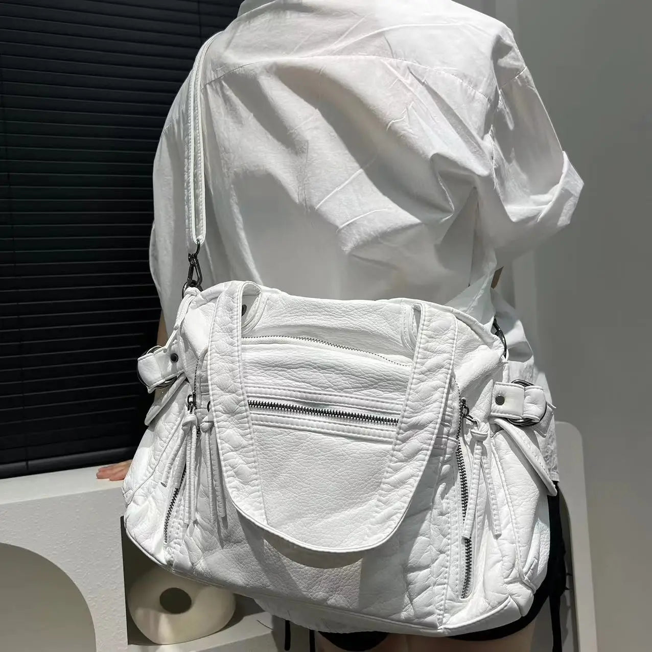 Damen Y2K Motorrad Umhängetasche Mit Großer Kapazität Und Mehrfach-Reißverschlüssen