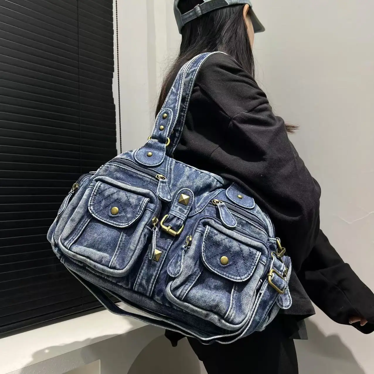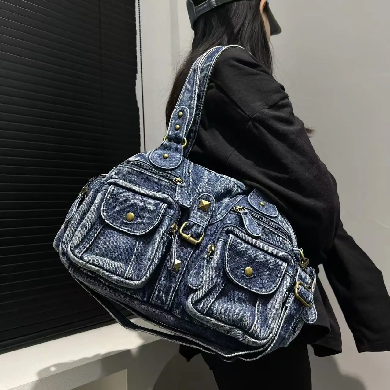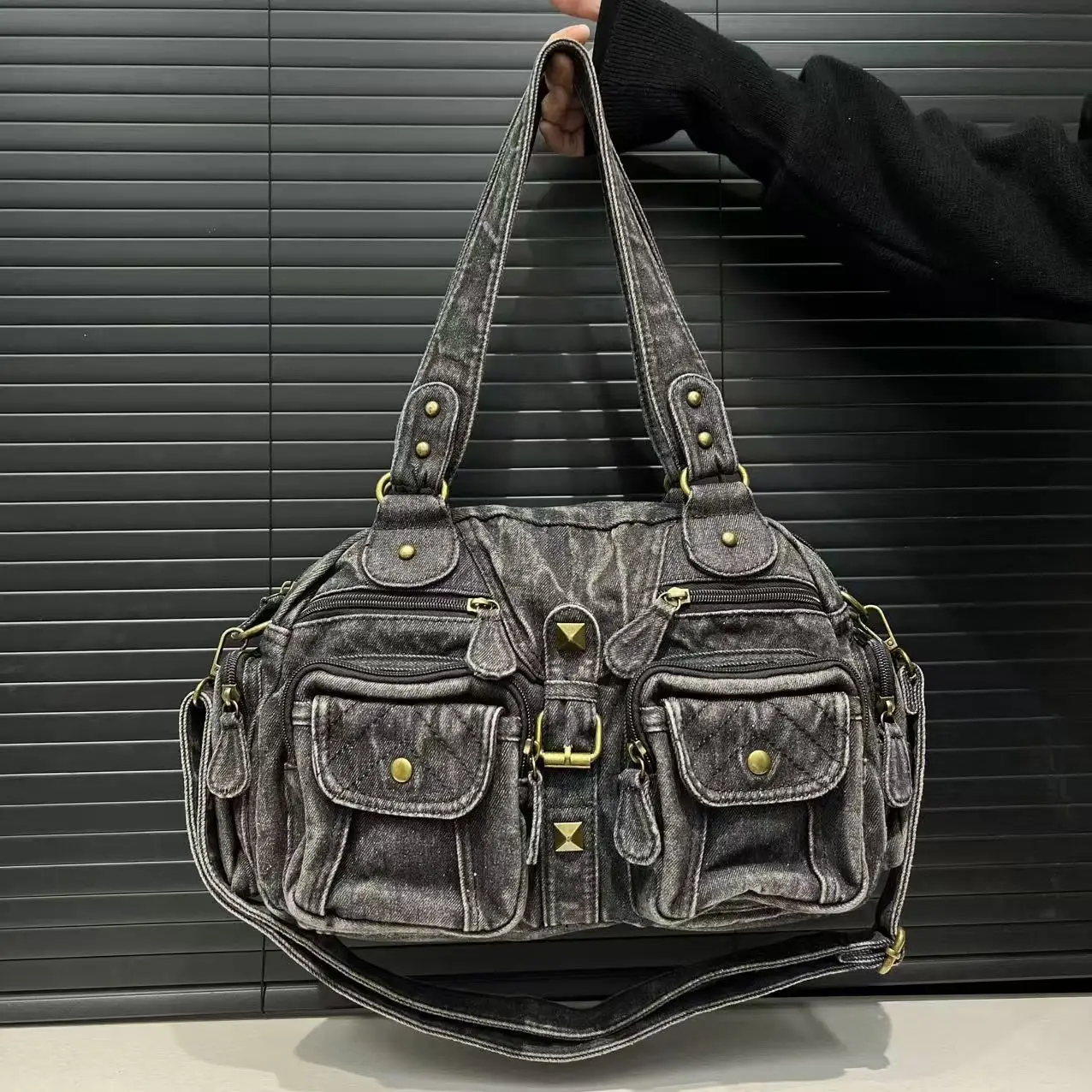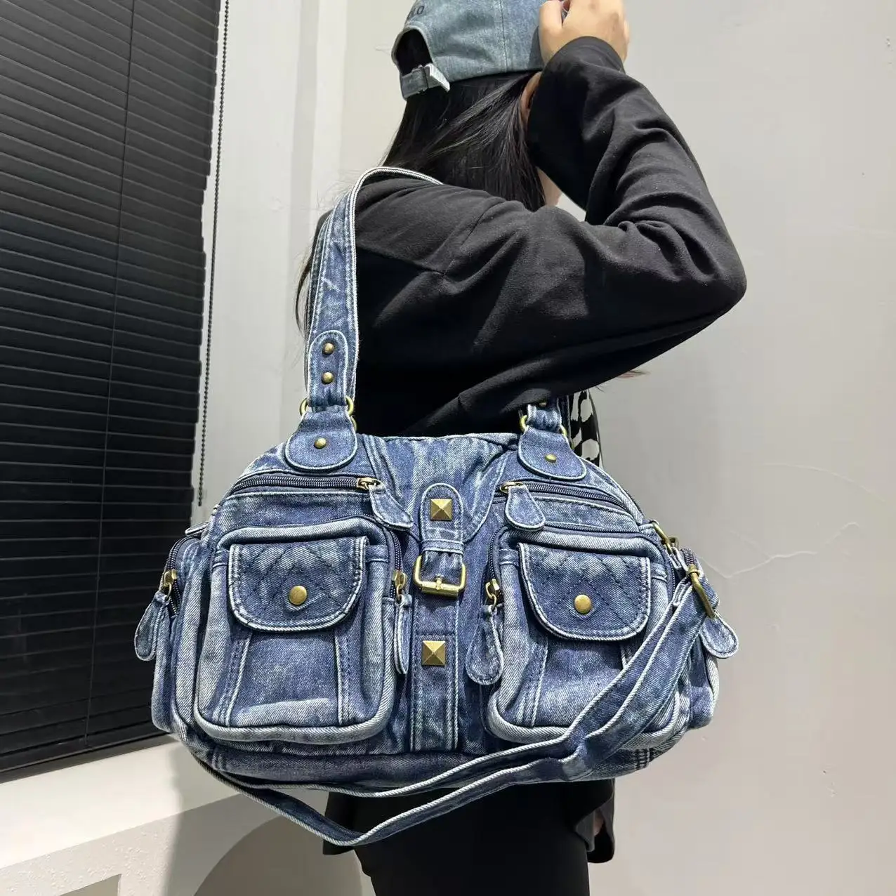 Damen Y2K Retro Mehrfach-Taschen Handtasche - Große Kapazität, Distressed Schultertasche