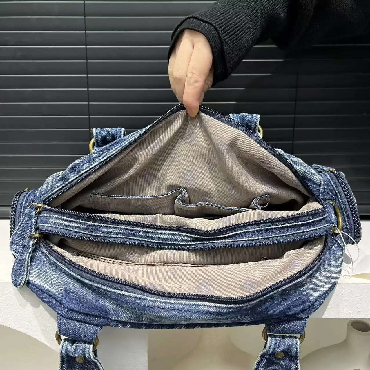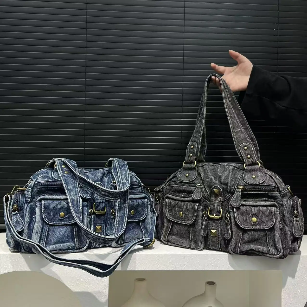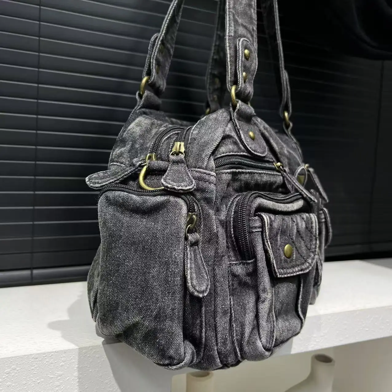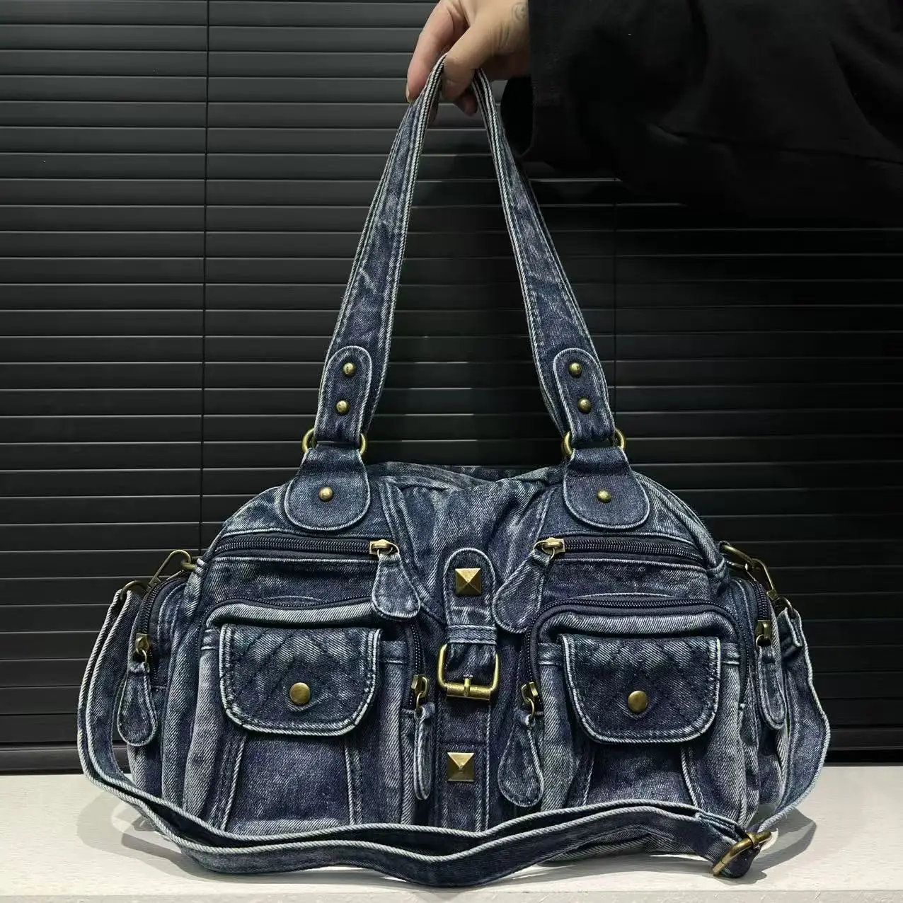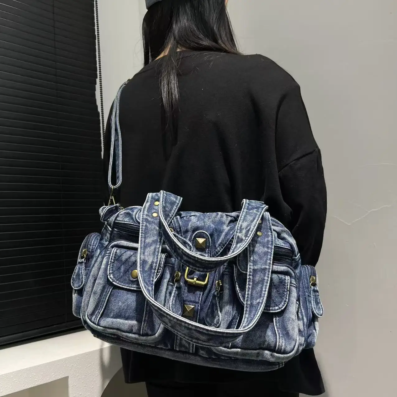 Damen Y2K Retro Mehrfach-Taschen Handtasche - Große Kapazität, Distressed Schultertasche