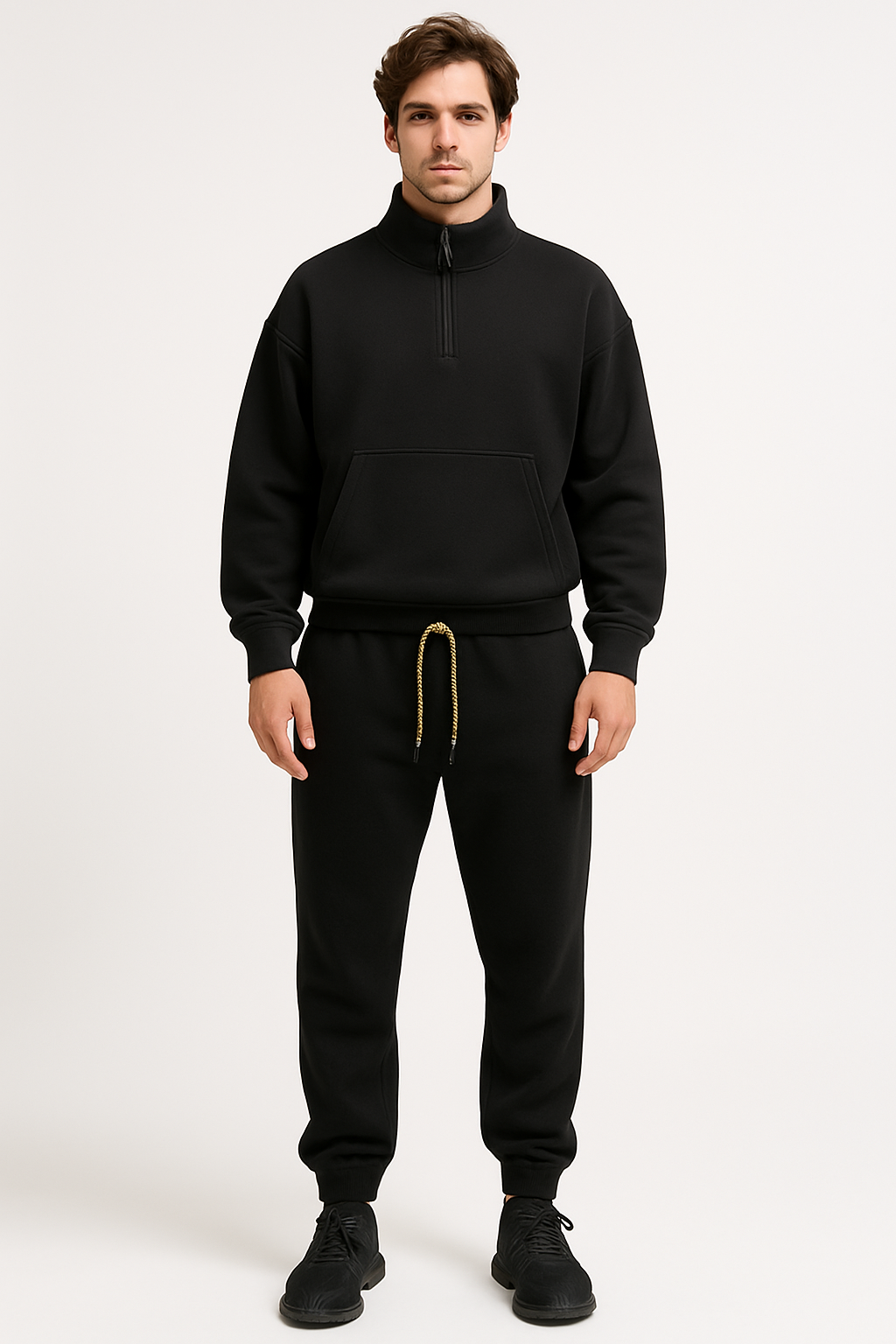 David | Schwarzer Fleece Freizeitanzug für Herren