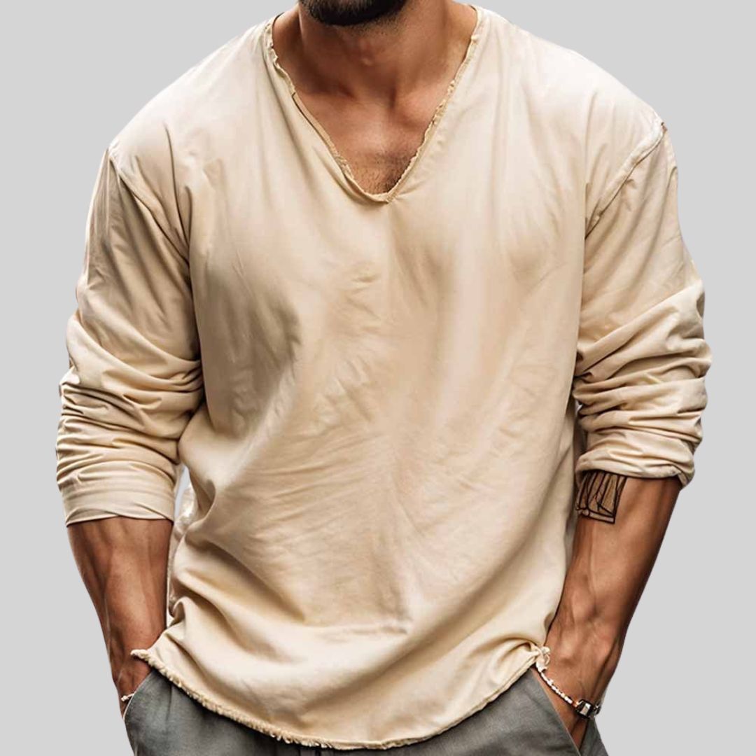 Dino | Langarm-Hemd mit tiefem V-Ausschnitt für Männer