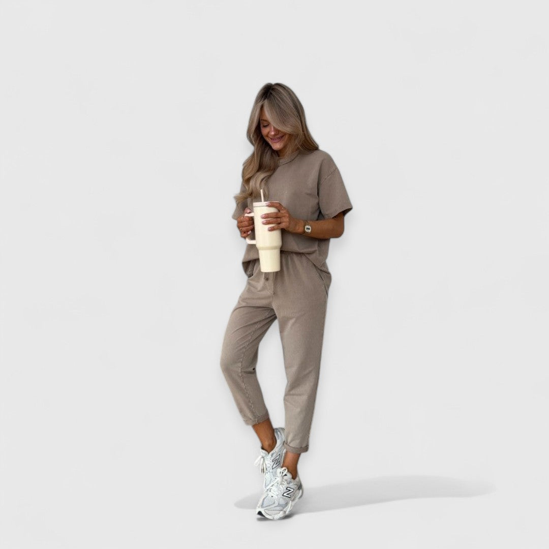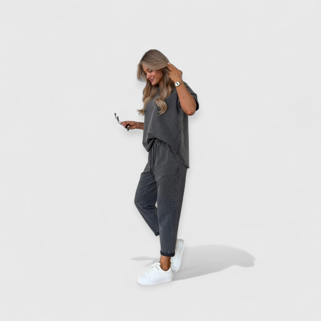 Entdecken Sie die perfekte Kombination aus Chic und Komfort mit unserem meistverkauften Eden-Zweiteiler. Entworfen für die moderne Frau, die Stil ebenso schätzt wie Bequemlichkeit, fällt dieses Outfit wunderschön und bietet einen weichen Touch, der mit Ihnen mitgeht. Ideal für entspannte Wochenenden, spontane Kurzurlaube oder einfach zum stilvollen Entspannen.