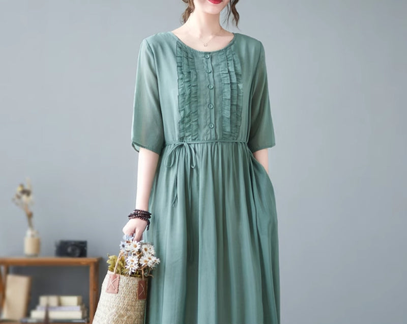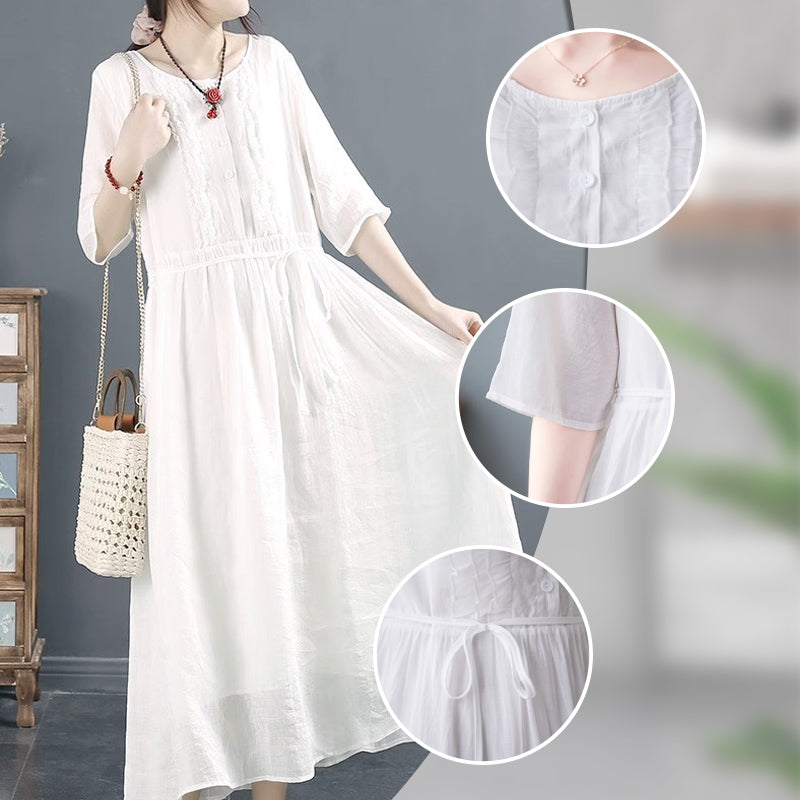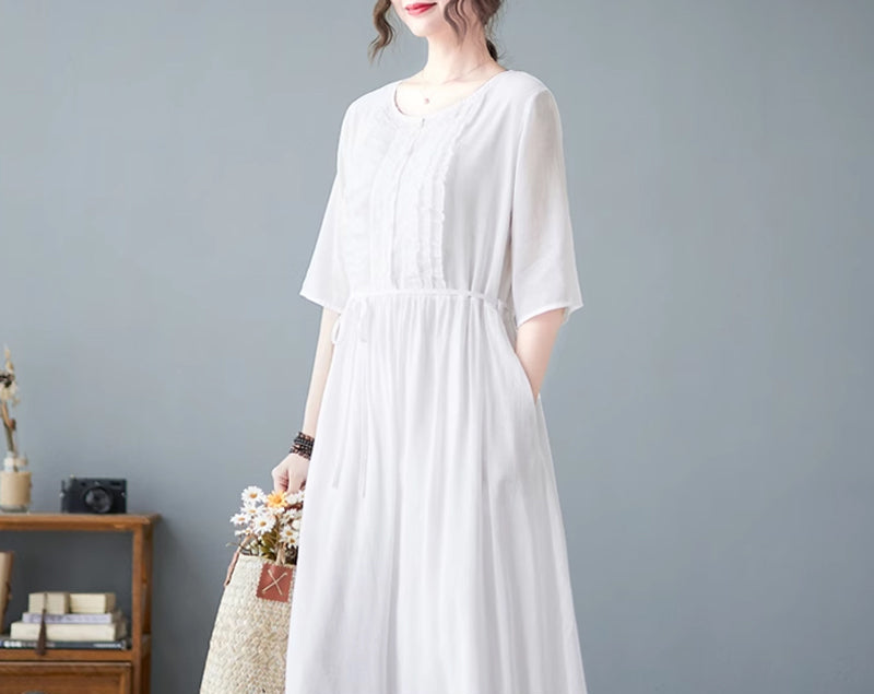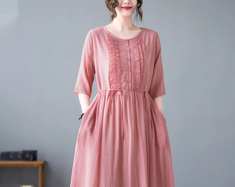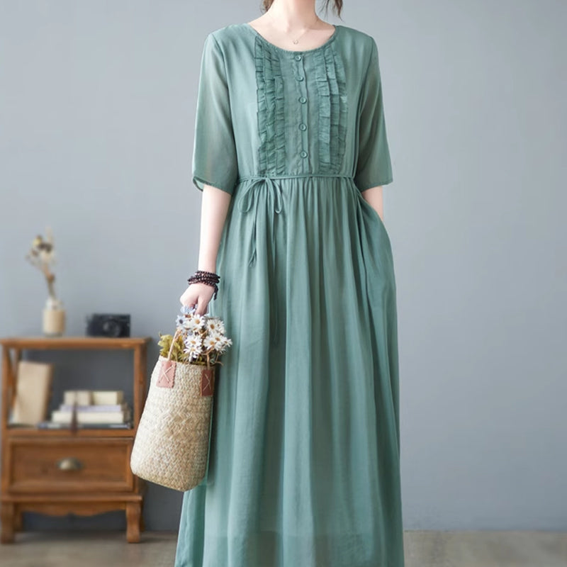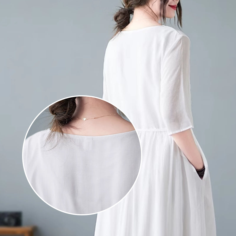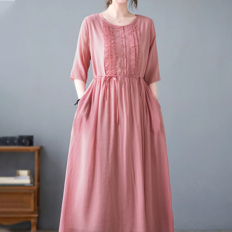 Elizabeth | Einfaches Frauenkleid mit Rundhalsausschnitt und mittellangen Ärmeln in Uni-Farbe