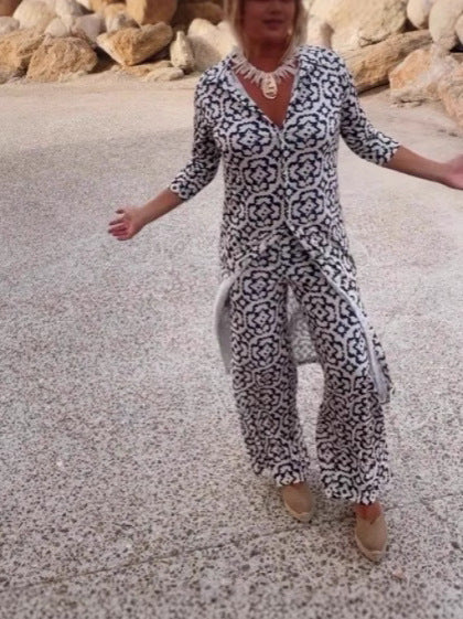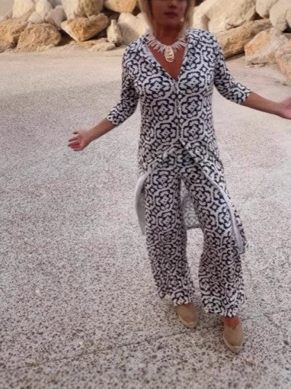 Das Erika Set vereint stilvolles Design mit höchstem Tragekomfort. Bestehend aus einem elegant geschnittenen Oberteil und einer passenden Hose, eignet sich dieses Set perfekt für verschiedene Anlässe – ob im Büro, bei gesellschaftlichen Events oder in der Freizeit. Das hochwertige Material schmiegt sich angenehm an den Körper und sorgt für ein luxuriöses Tragegefühl.