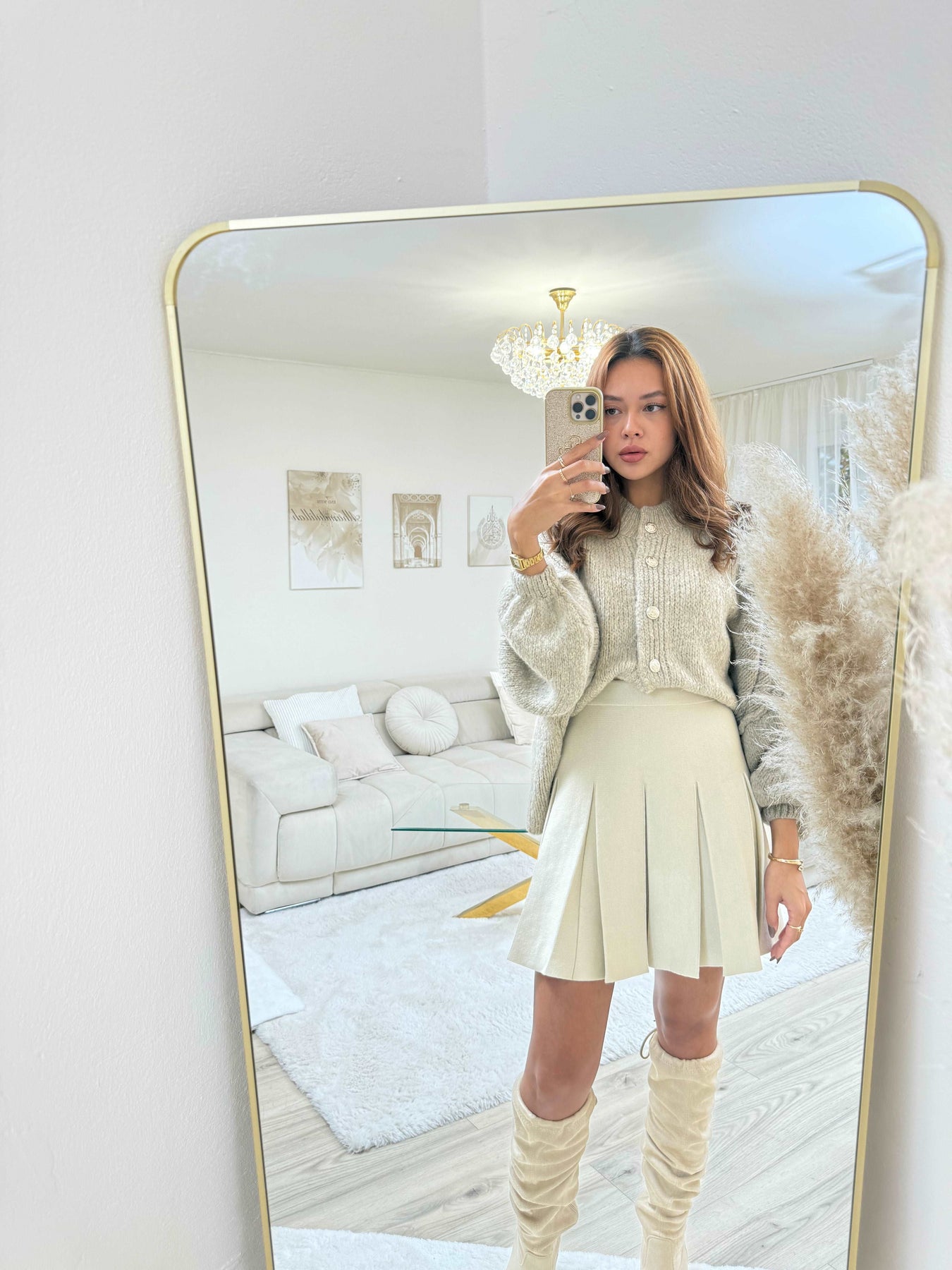 Die Qualität unseres Falten-Strickrocks zeigt sich in jedem Detail. Jede Naht und jedes Faltenmuster wurde mit größter Sorgfalt gefertigt, um dir ein langlebiges, formbeständiges und stilvolles Kleidungsstück zu bieten.