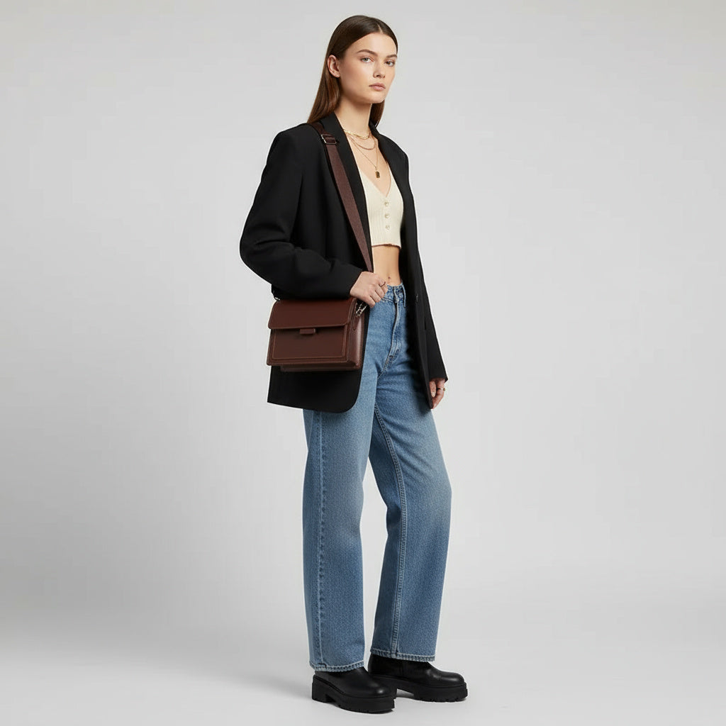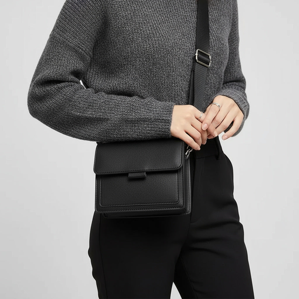 Minimalistisch und zeitlos – eine kompakte Crossbody-Bag, die Eleganz und Funktion vereint. Perfekt für Arbeit, Freizeit und Reisen; harmoniert mühelos mit Strick, Denim und cleanen, minimalistischen Looks.