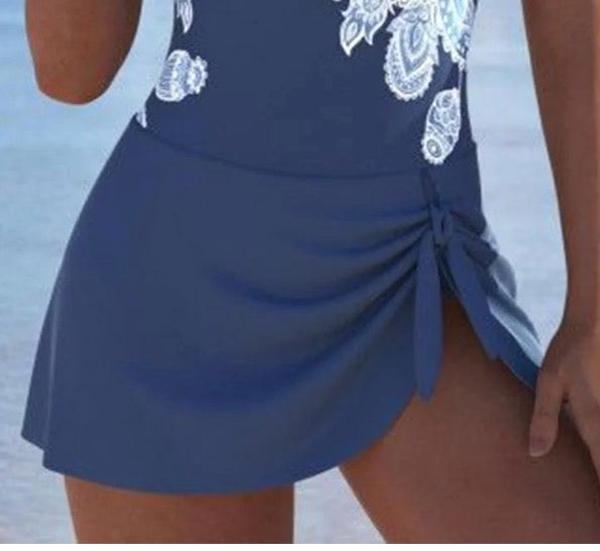 Dieses Tankini-Set vereint Komfort und Eleganz auf eine Weise, die dich an jedem Strand oder Pool zur wahren Stilikone macht. Das detailreiche Paisley-Muster in Weiß auf tiefblauem Hintergrund sorgt für einen harmonischen Look, der klassisch und modern zugleich wirkt. Die sanft gerafften Rockdetails verleihen dem Design eine feminine Note, während der figurbetonte Schnitt deine Silhouette perfekt in Szene setzt. Dieses Modell soll so viele Komplimente erhalten haben, dass es als offizieller „Strand-Magnet“ gilt!