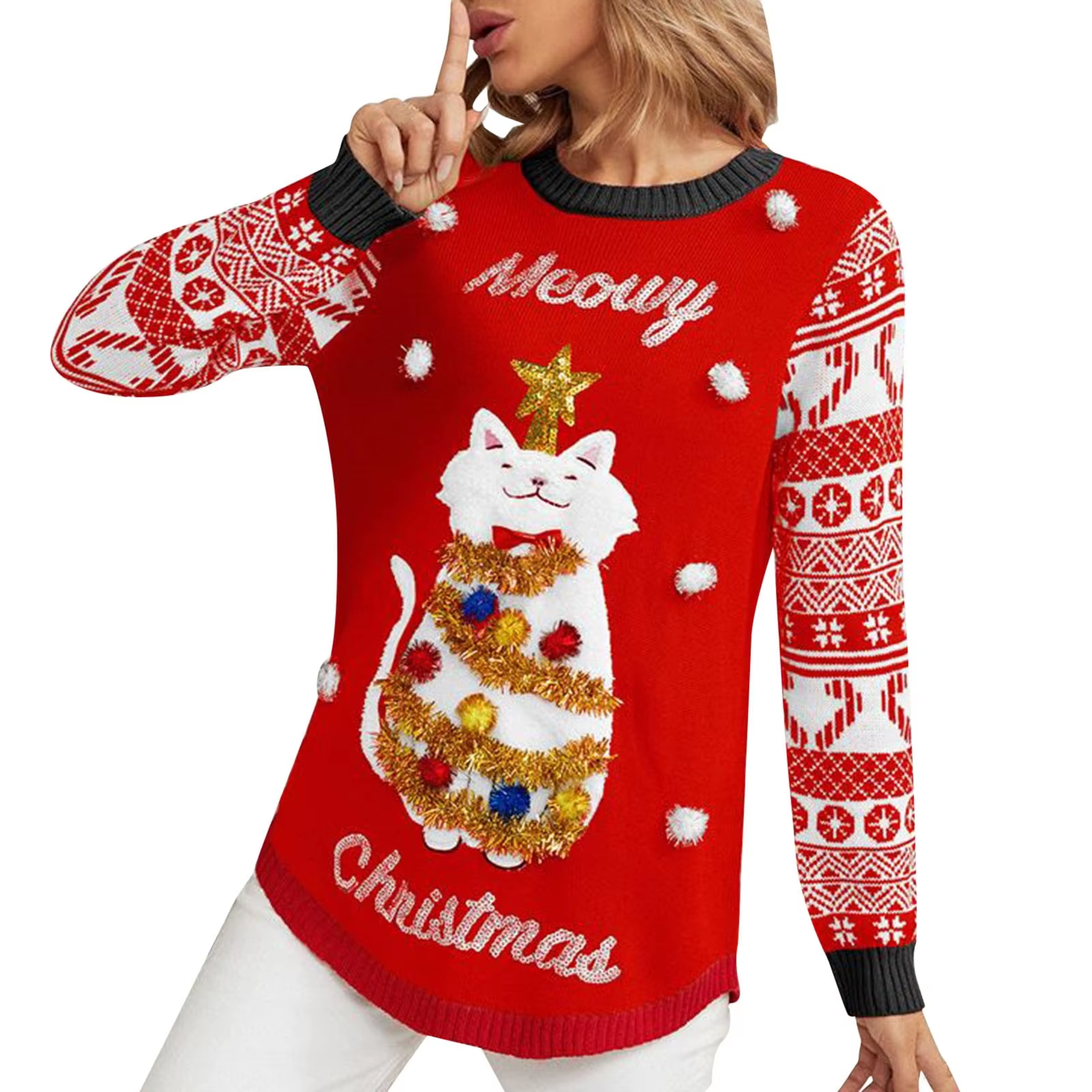 Glanzza - Weihnachtspullover – Lustiges Motiv, Langarm, Winterpullover