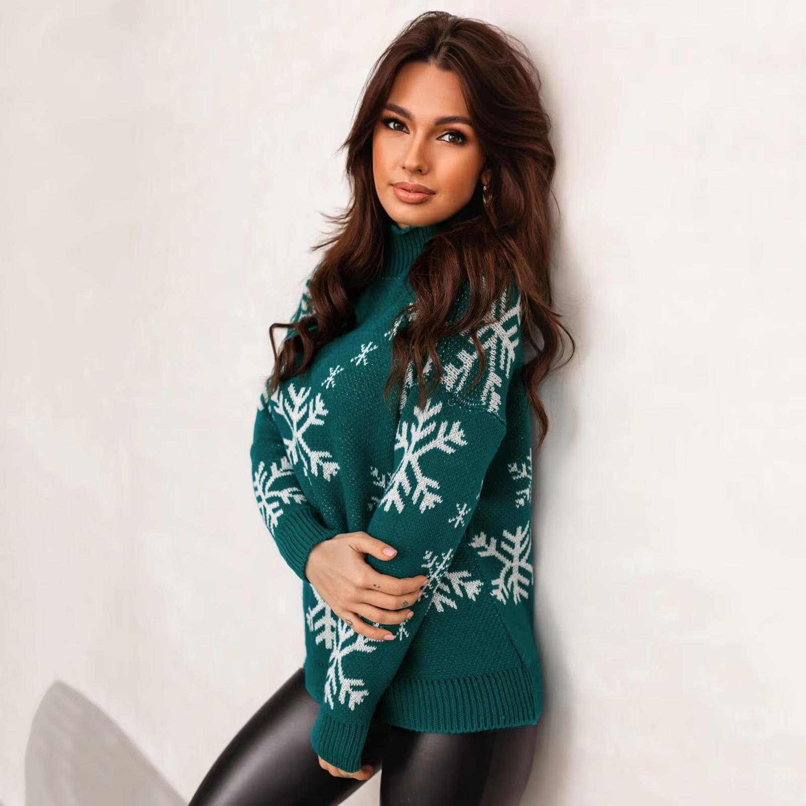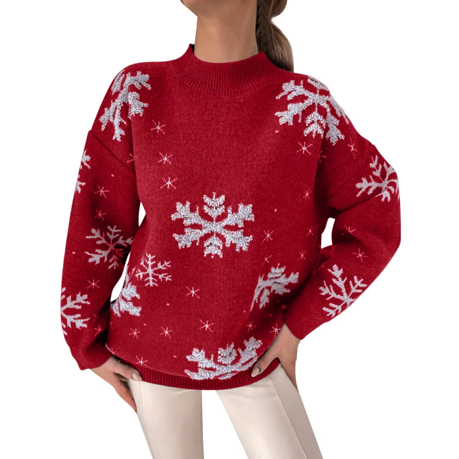 Kombiniere den Glitzer Pullover mit einer schlichten Hose oder Jeans für einen entspannten und dennoch festlichen Look. Ergänze dein Outfit mit auffälligen Ohrringen oder winterlichen Accessoires, um den Look zu vervollständigen.