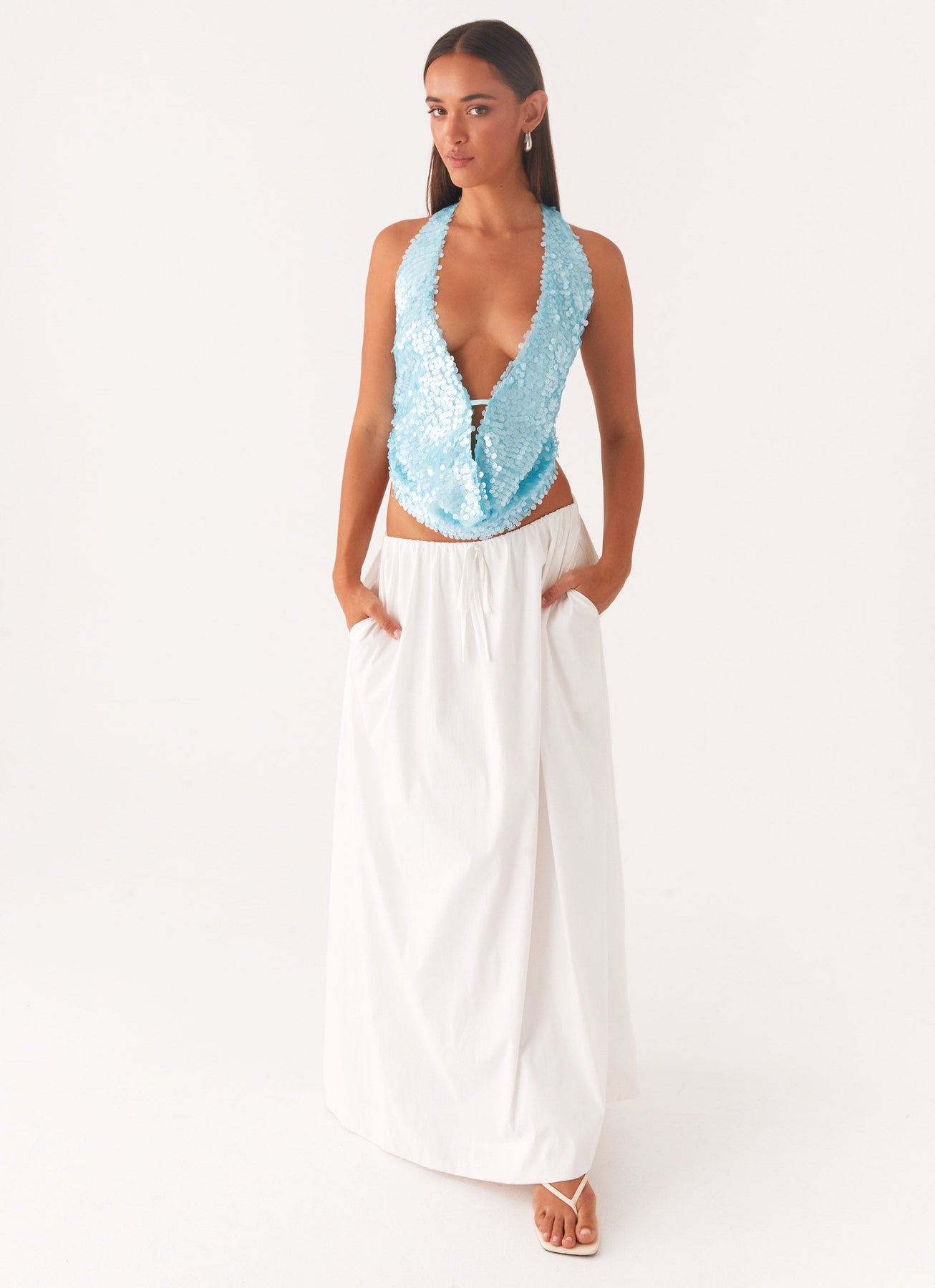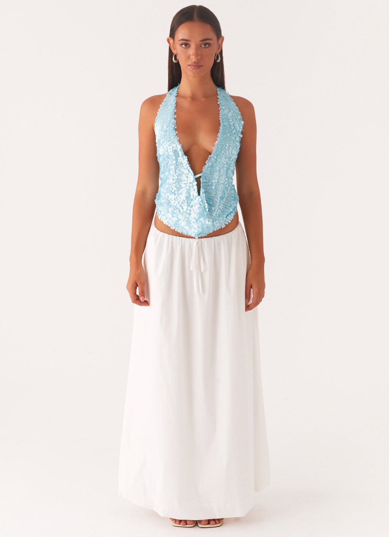 Grace I Pailletten Haltertop mit Tiefem V-Ausschnitt