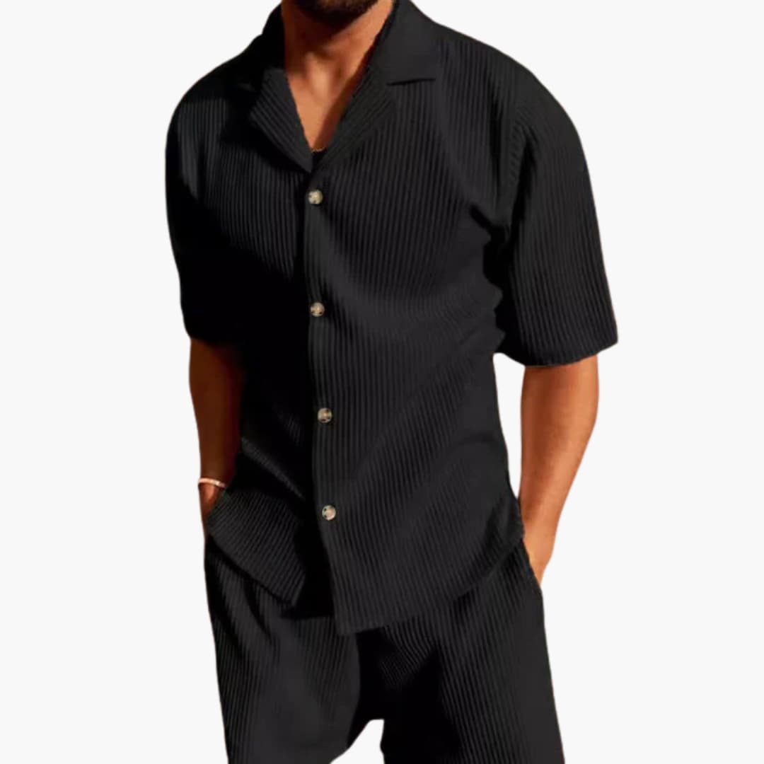 Herren Sommer Set aus strukturiertem Stoff mit Kurzarmhemd