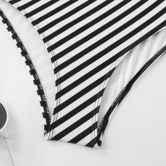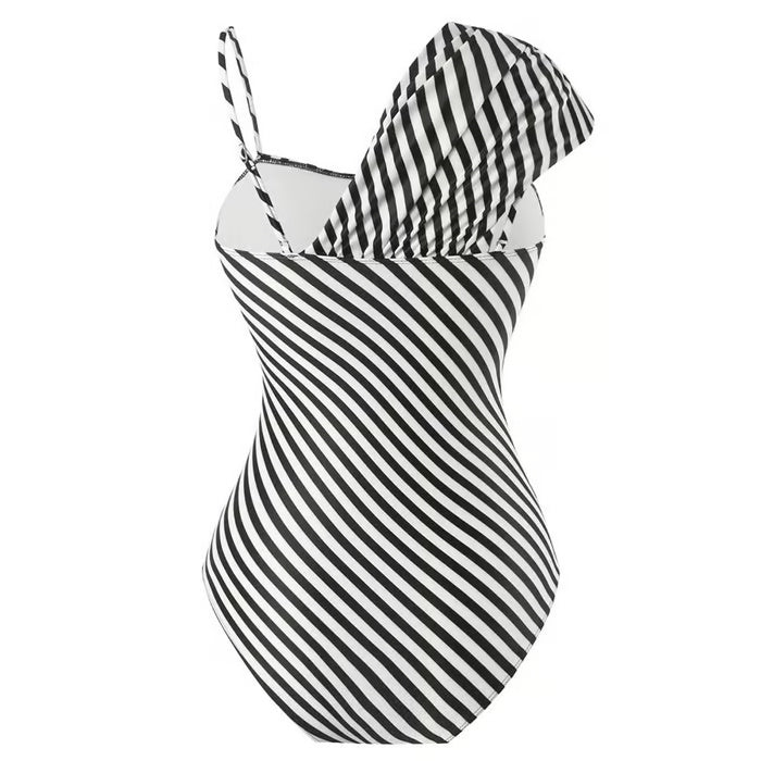 Dieser einteilige Badeanzug mit asymmetrischem Design zeichnet sich durch seine Originalität und seinen modernen Stil aus. Ideal für alle, die ein einzigartiges Kleidungsstück suchen, das Eleganz und Trend vereint.