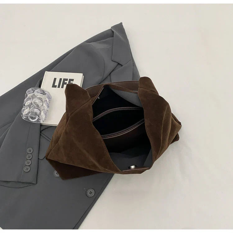 Hochwertige Materialien: Hergestellt aus hochwertigem Wildleder und einer Leinenfutter, ist diese Tasche für Langlebigkeit und Widerstandsfähigkeit im Alltag ausgelegt.
