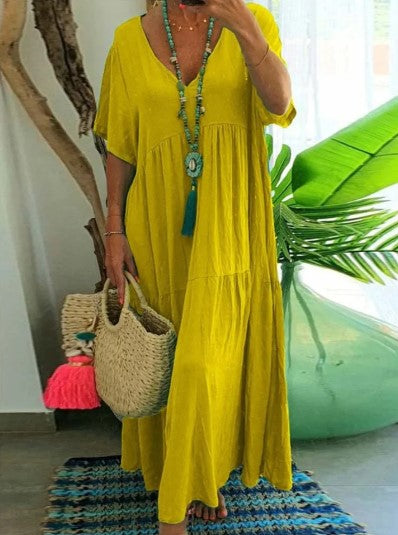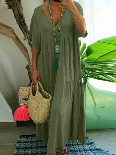 Stylish and Comfortable Summer Essential: This dress combines the best of cotton and linen for a breathable, soft feel perfect for warm days. The lightweight fabric offers comfort and flexibility, making it ideal for casual outings or a laid-back afternoon.