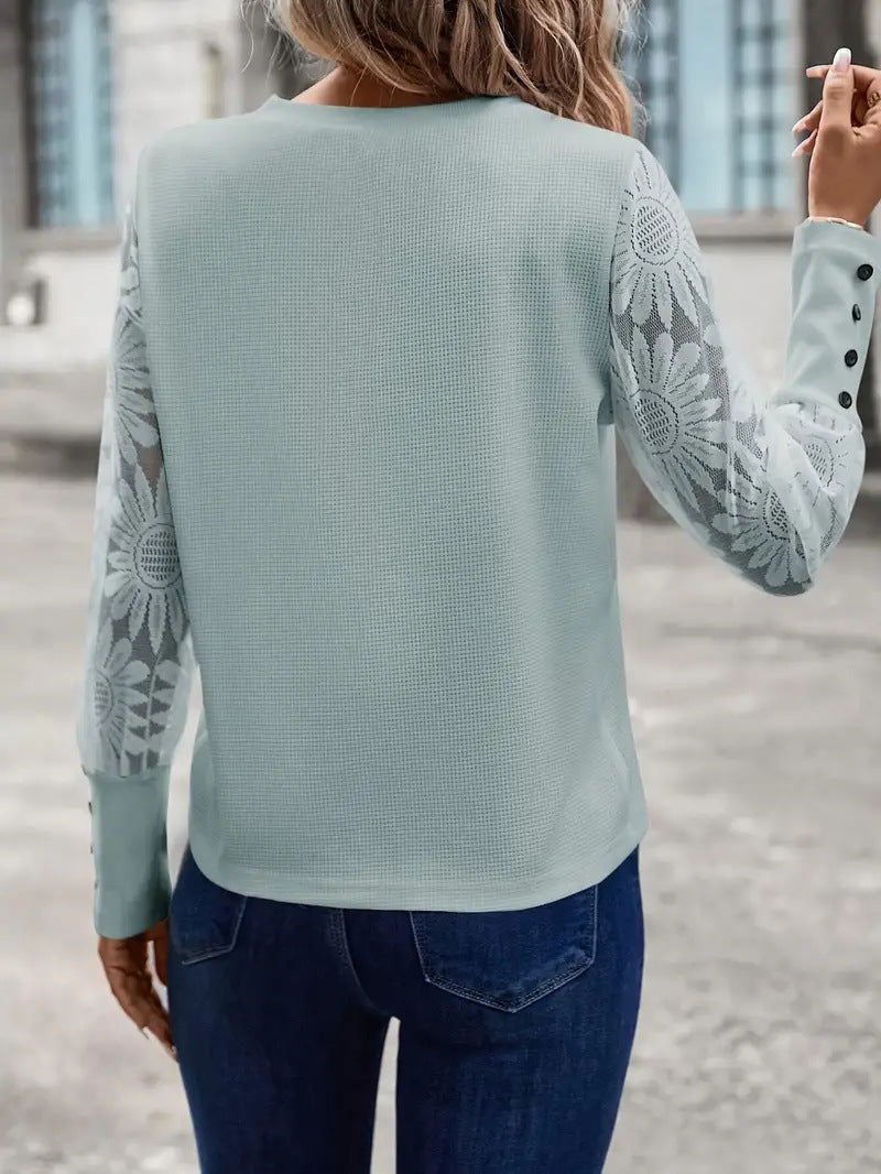 Das Lara-Top zeichnet sich durch zarte Spitzenstickerei und einen schmeichelhaften U-Ausschnitt aus, der Raffinesse ausstrahlt. Die luftigen Gaze-Akzente und der leichte Stoff machen es perfekt für lässige Ausflüge, Arbeitstage oder besondere Anlässe. Erhältlich in einer Vielzahl schicker Farben.