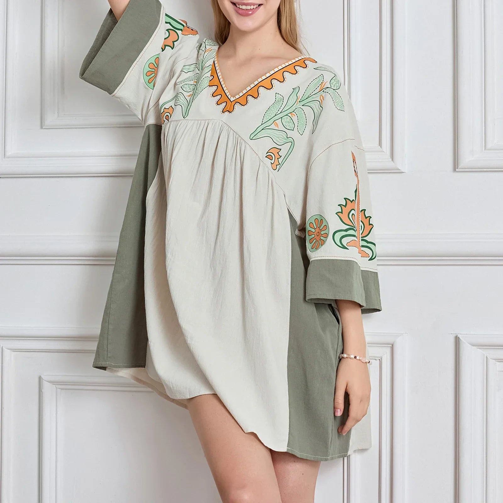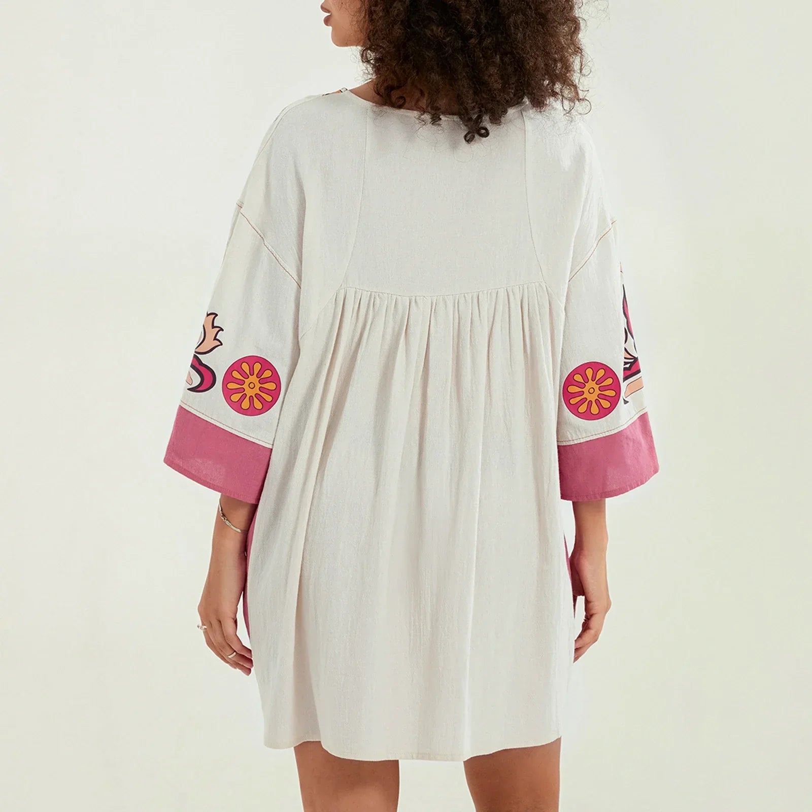 Lässiges Oversize Boho Damen Minikleid mit 3/4 Ärmeln