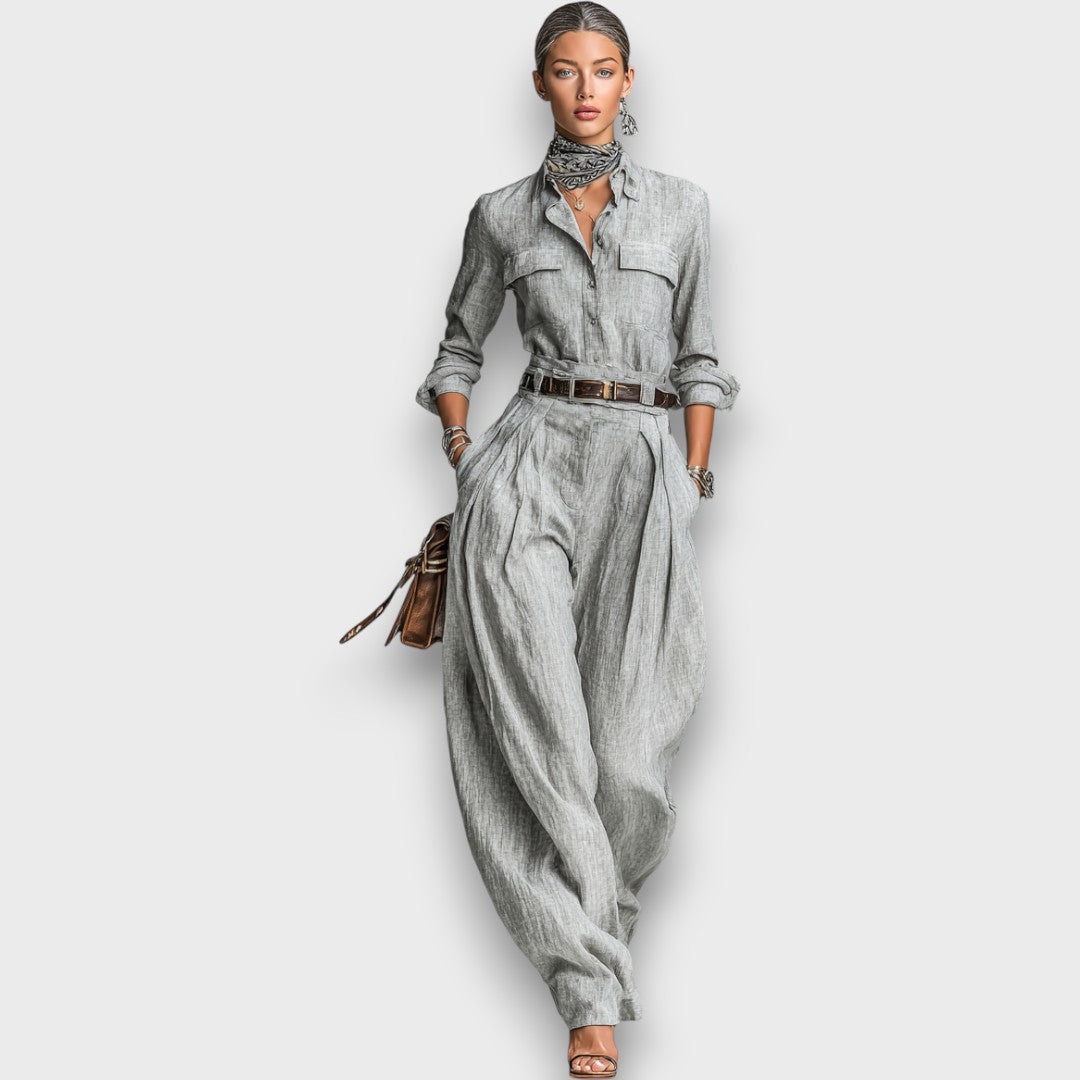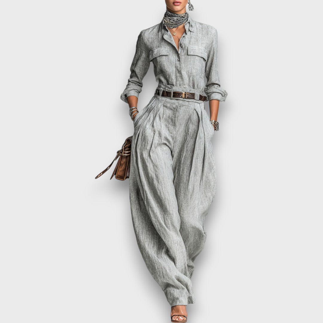Malvine – Zweiteiliges Set aus Baumwoll-Leinen mit Gürtel